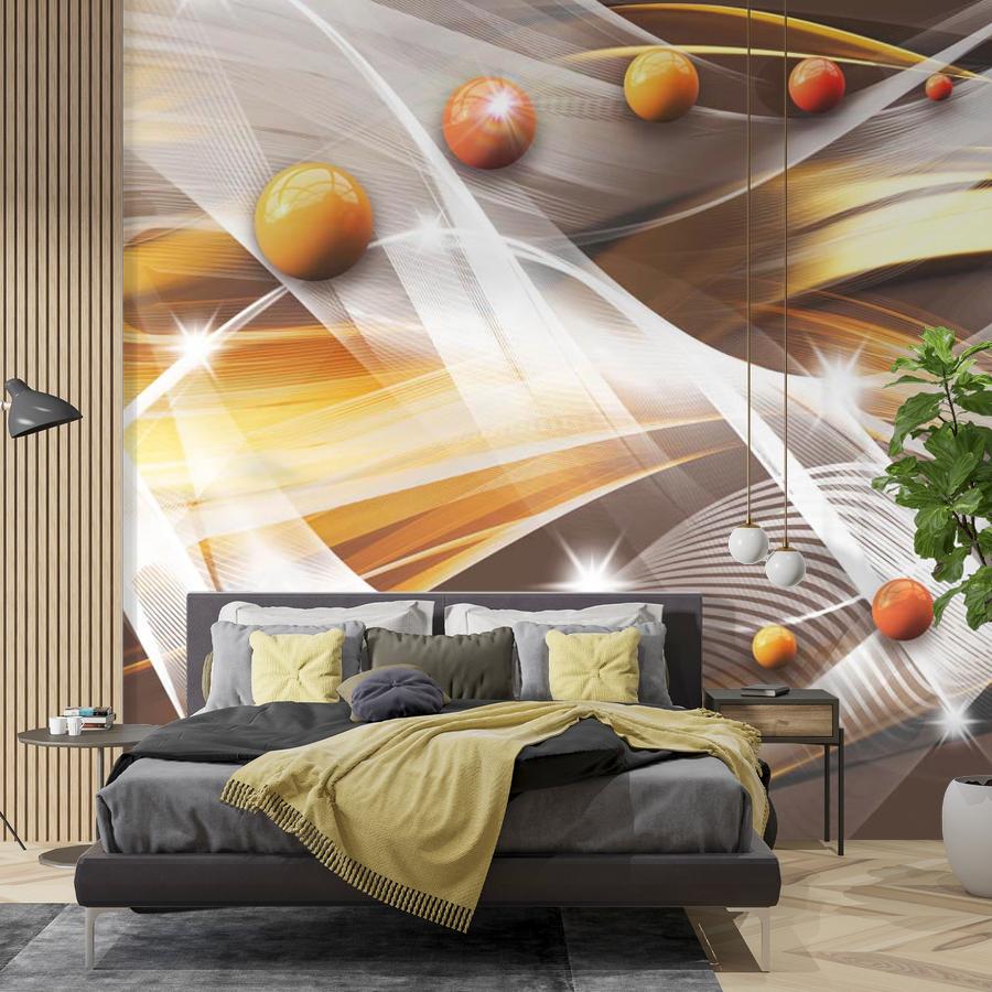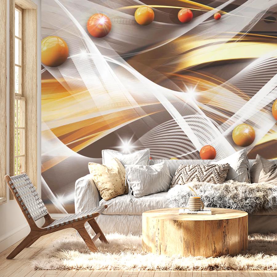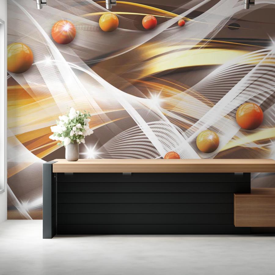 Бесшовные фотообои Оранжевая абстракция, артикул 14-294, прекрасно подойдут к любому помещению: в гостиную, в спальню, в кухню или в детскую и украсят ваш интерьер. Купить фотообои в интернет магазине MasterFresok можно в нескольких типовых размерах: