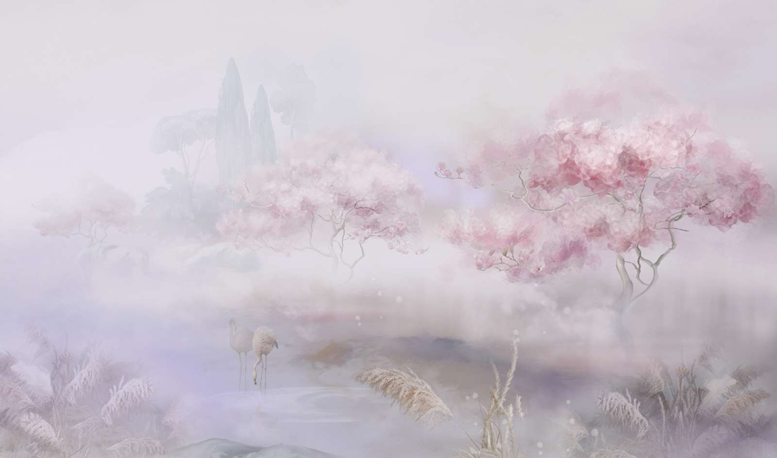 Фотообои Розовые деревья и фламинго 13-1030-S-Холст