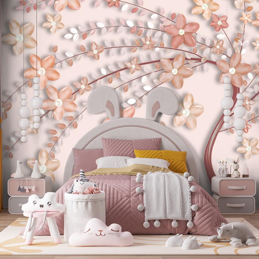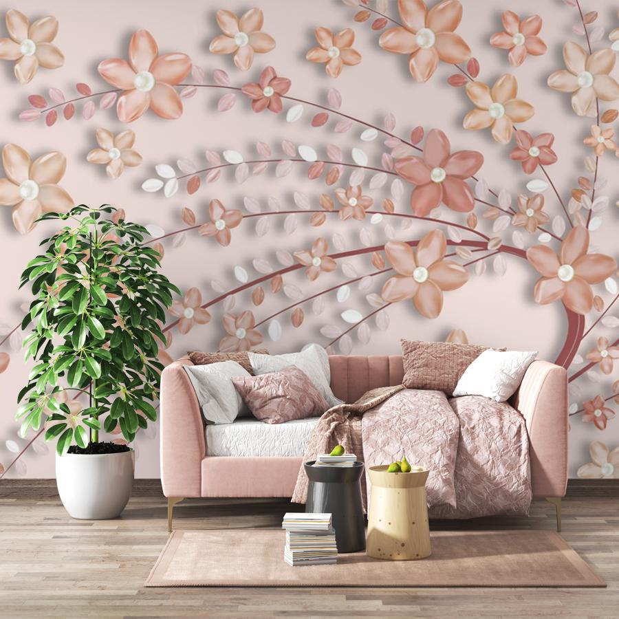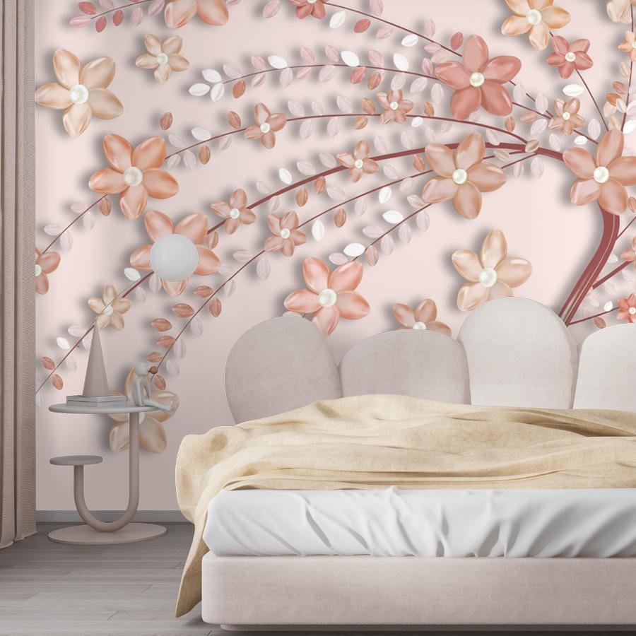 Бесшовные фотообои Объёмное дерево с цветами, артикул 14-633, прекрасно подойдут к любому помещению: в гостиную, в спальню, в кухню или в детскую и украсят ваш интерьер. Купить фотообои в интернет магазине MasterFresok можно в нескольких типовых размерах: