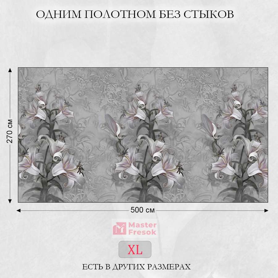 Бесшовные фотообои Лилия, артикул 13-147, прекрасно подойдут к любому помещению: в гостиную, в спальню, в кухню или в детскую и украсят ваш интерьер. Купить фотообои в интернет магазине MasterFresok можно в нескольких типовых размерах:
