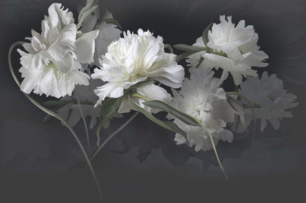 Фотообои Белые цветущие пионы на темно сером фоне 13-1008-S-Холст
