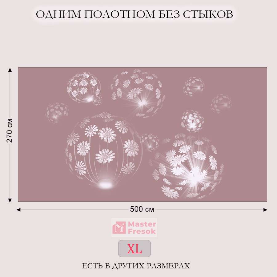 Бесшовные фотообои Одуванчики 3д, артикул 13-076, прекрасно подойдут к любому помещению: в гостиную, в спальню, в кухню или в детскую и украсят ваш интерьер. Купить фотообои в интернет магазине MasterFresok можно в нескольких типовых размерах: