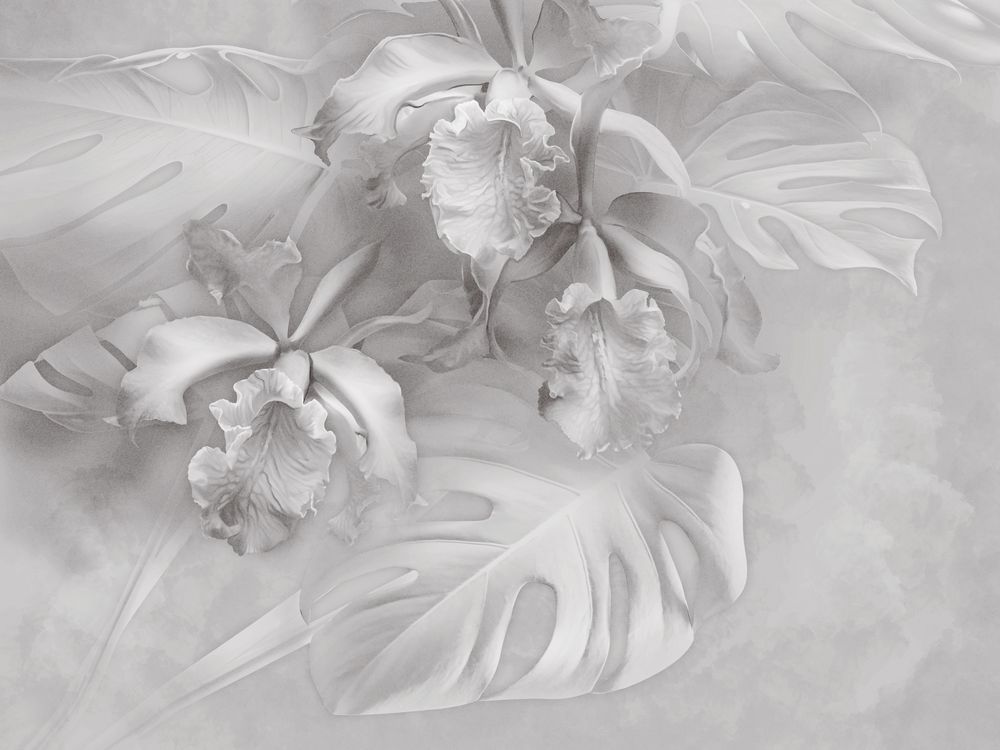 Фотообои Листья монстеры и цветы ириса 13-1110-S-Холст
