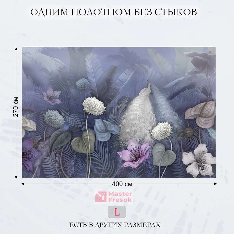 Бесшовные фотообои Павлин в цветах , артикул 13-345, прекрасно подойдут к любому помещению: в гостиную, в спальню, в кухню или в детскую и украсят ваш интерьер. Купить фотообои в интернет магазине MasterFresok можно в нескольких типовых размерах: