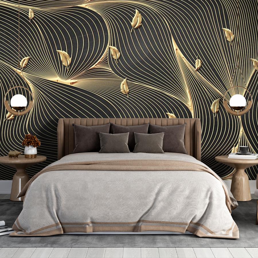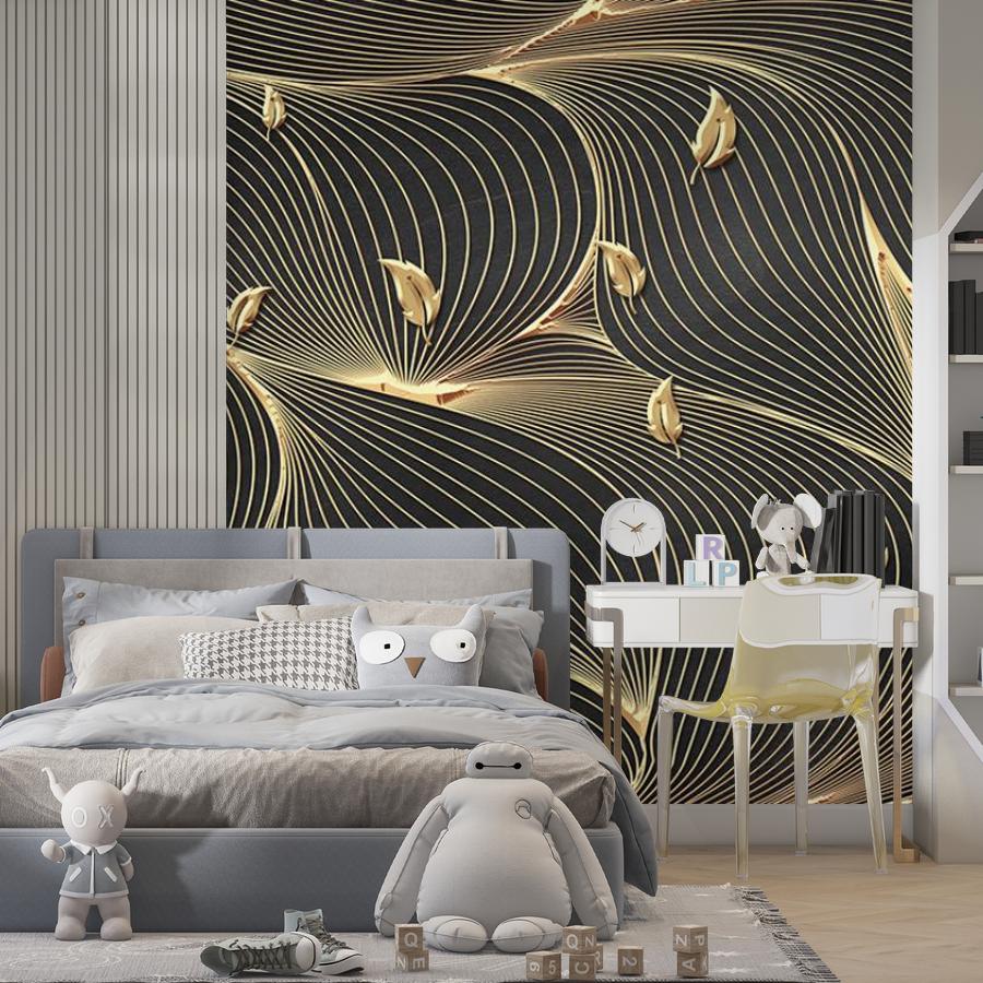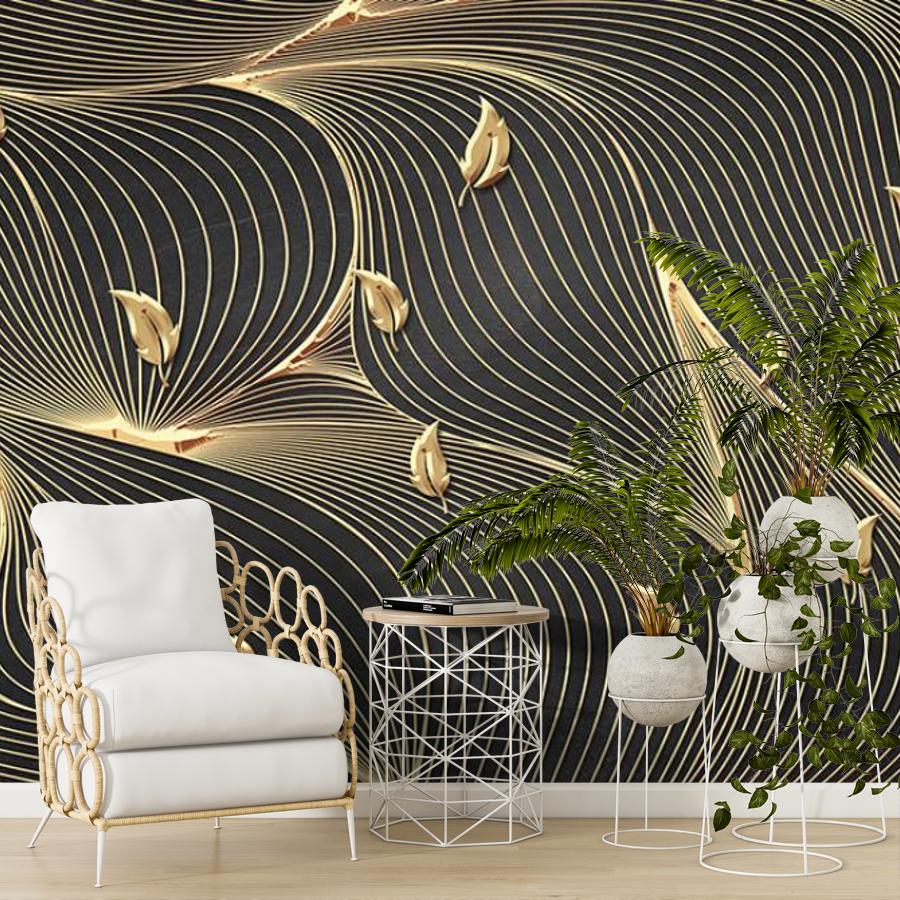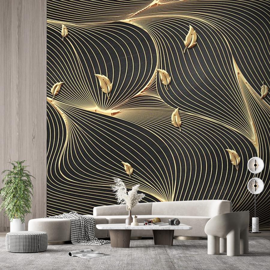Фотообои Золотые линии на черном фоне 14-511-S-Холст