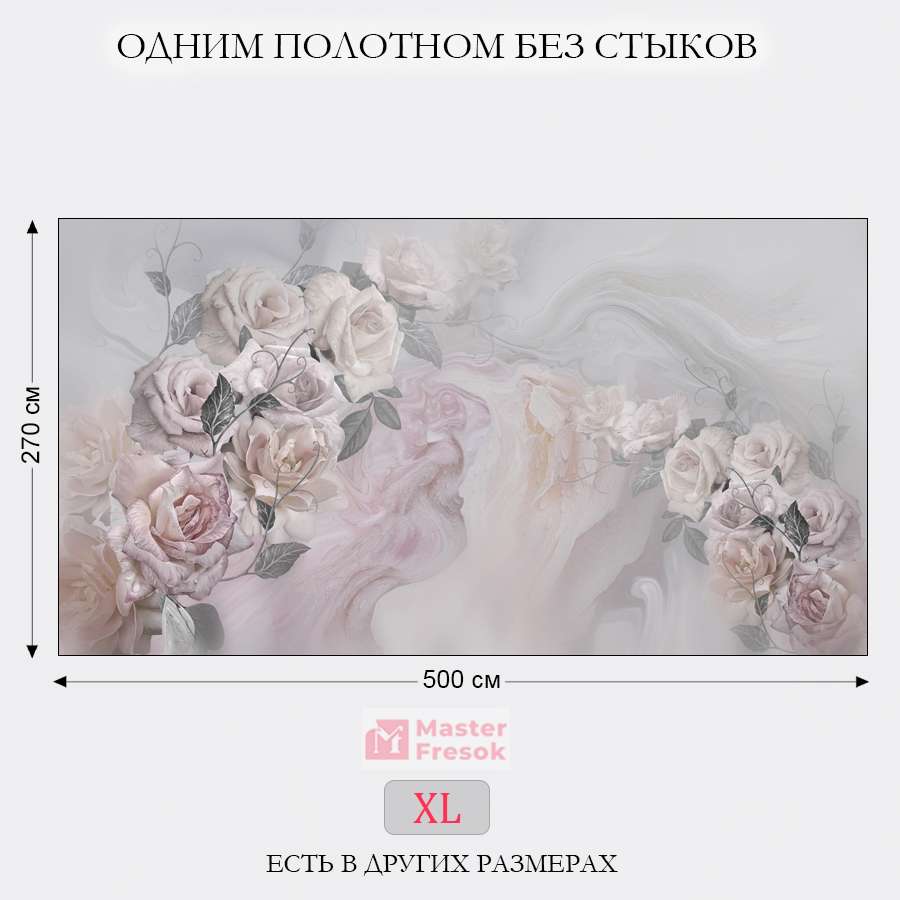 Бесшовные фотообои Пастельные розы, артикул 13-371, прекрасно подойдут к любому помещению: в гостиную, в спальню, в кухню или в детскую и украсят ваш интерьер. Купить фотообои в интернет магазине MasterFresok можно в нескольких типовых размерах: