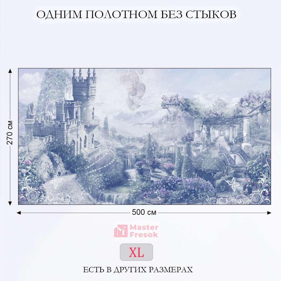 Бесшовные фотообои Замок в горах, артикул 13-346, прекрасно подойдут к любому помещению: в гостиную, в спальню, в кухню или в детскую и украсят ваш интерьер. Купить фотообои в интернет магазине MasterFresok можно в нескольких типовых размерах: