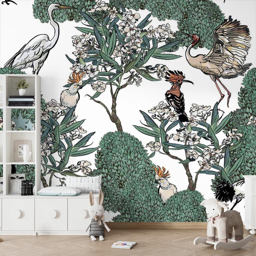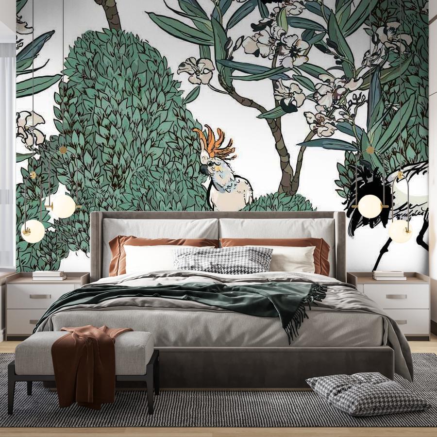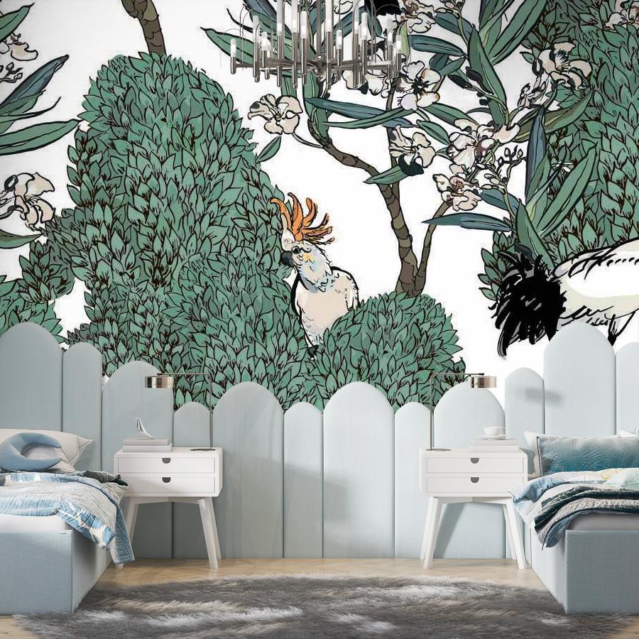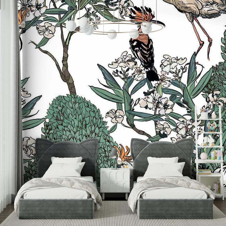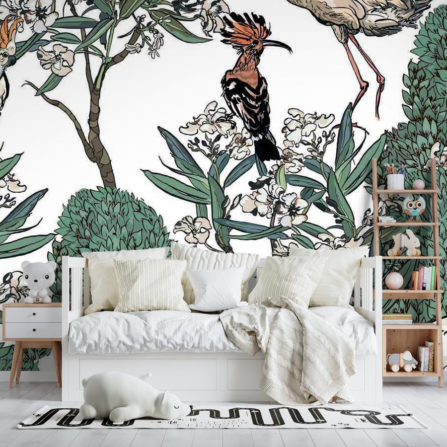 Бесшовные фотообои Тропические птицы, артикул 12-491, прекрасно подойдут к любому помещению: в гостиную, в спальню, в кухню или в детскую и украсят ваш интерьер. Купить фотообои в интернет магазине MasterFresok можно в нескольких типовых размерах: