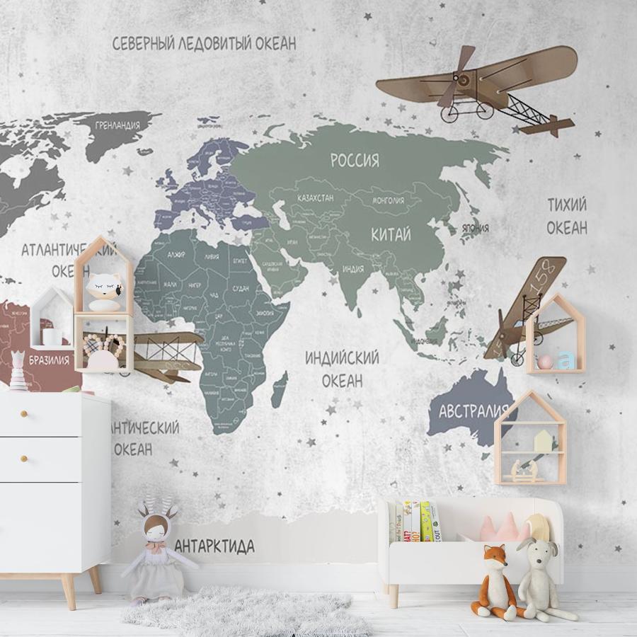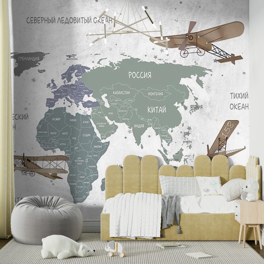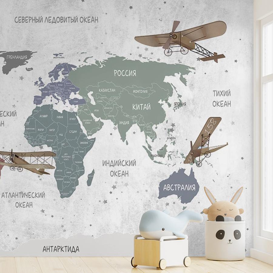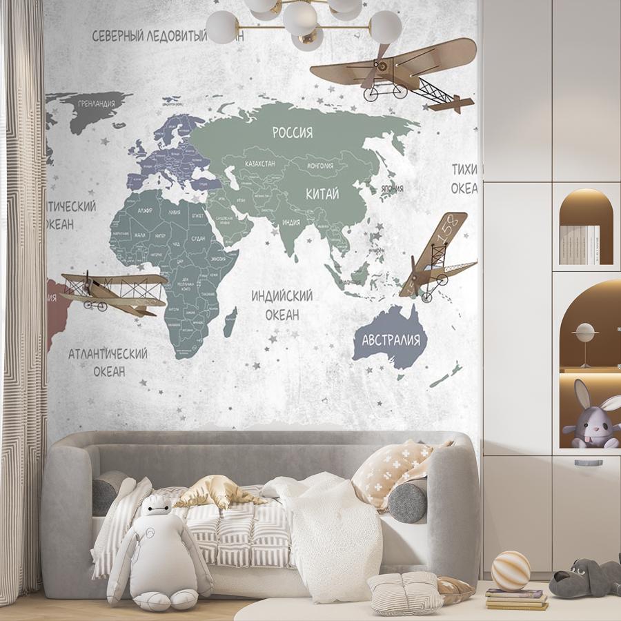Бесшовные фотообои Карта мира цветная, артикул 12-776, прекрасно подойдут к любому помещению: в гостиную, в спальню, в кухню или в детскую и украсят ваш интерьер. Купить фотообои в интернет магазине MasterFresok можно в нескольких типовых размерах: