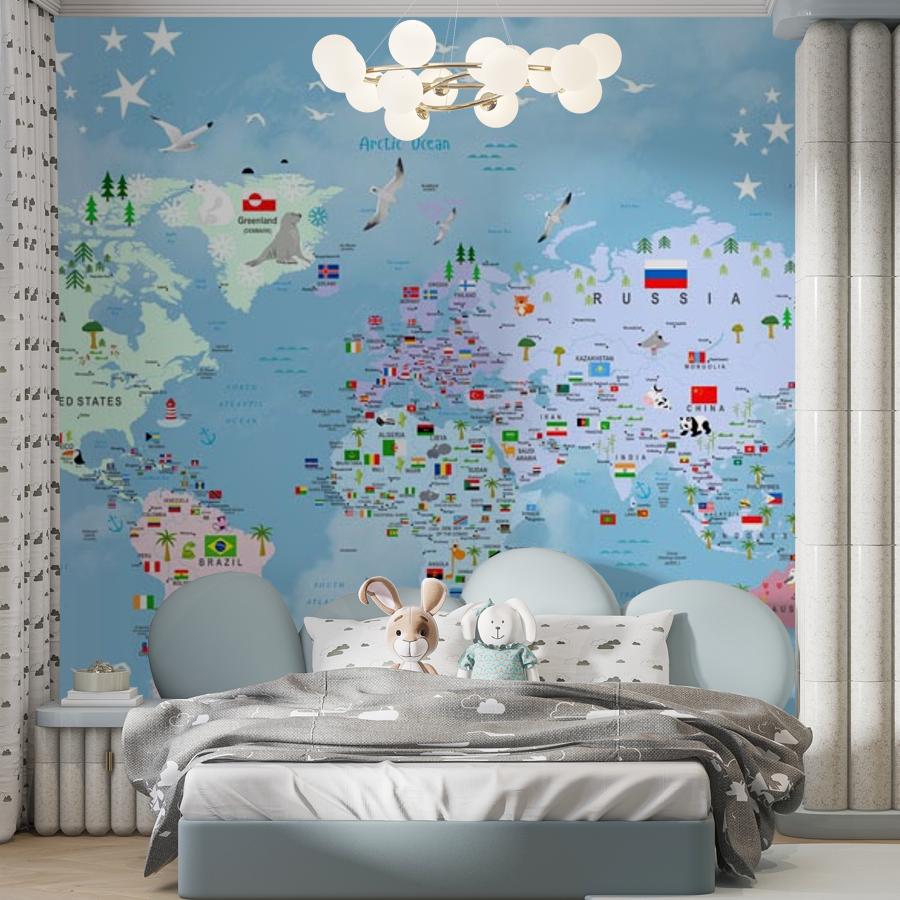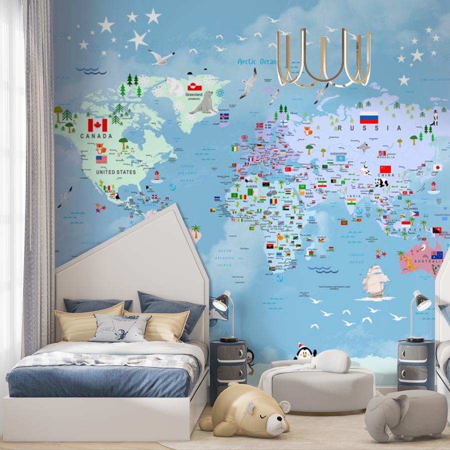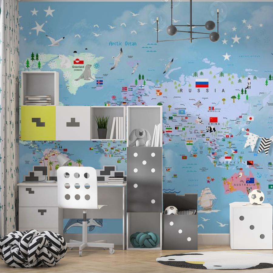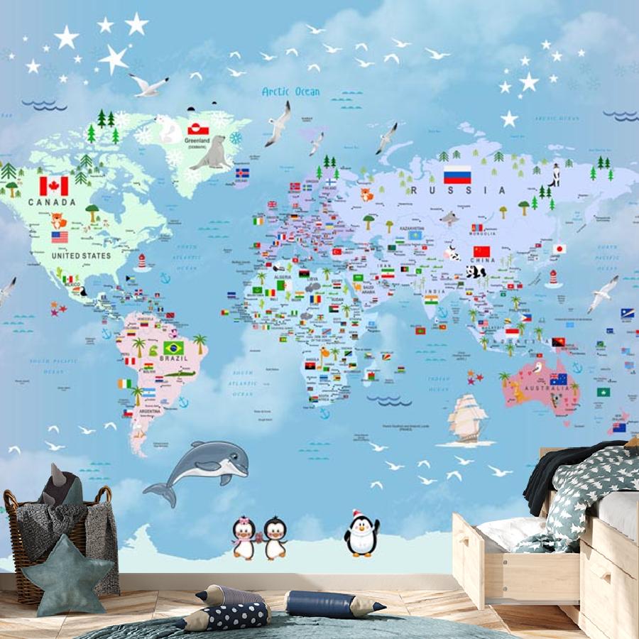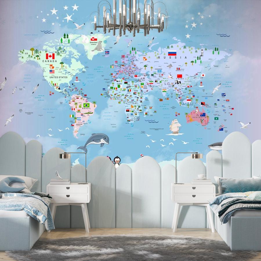 Бесшовные фотообои Карта мира разноцветная, артикул 12-786, прекрасно подойдут к любому помещению: в гостиную, в спальню, в кухню или в детскую и украсят ваш интерьер. Купить фотообои в интернет магазине MasterFresok можно в нескольких типовых размерах: