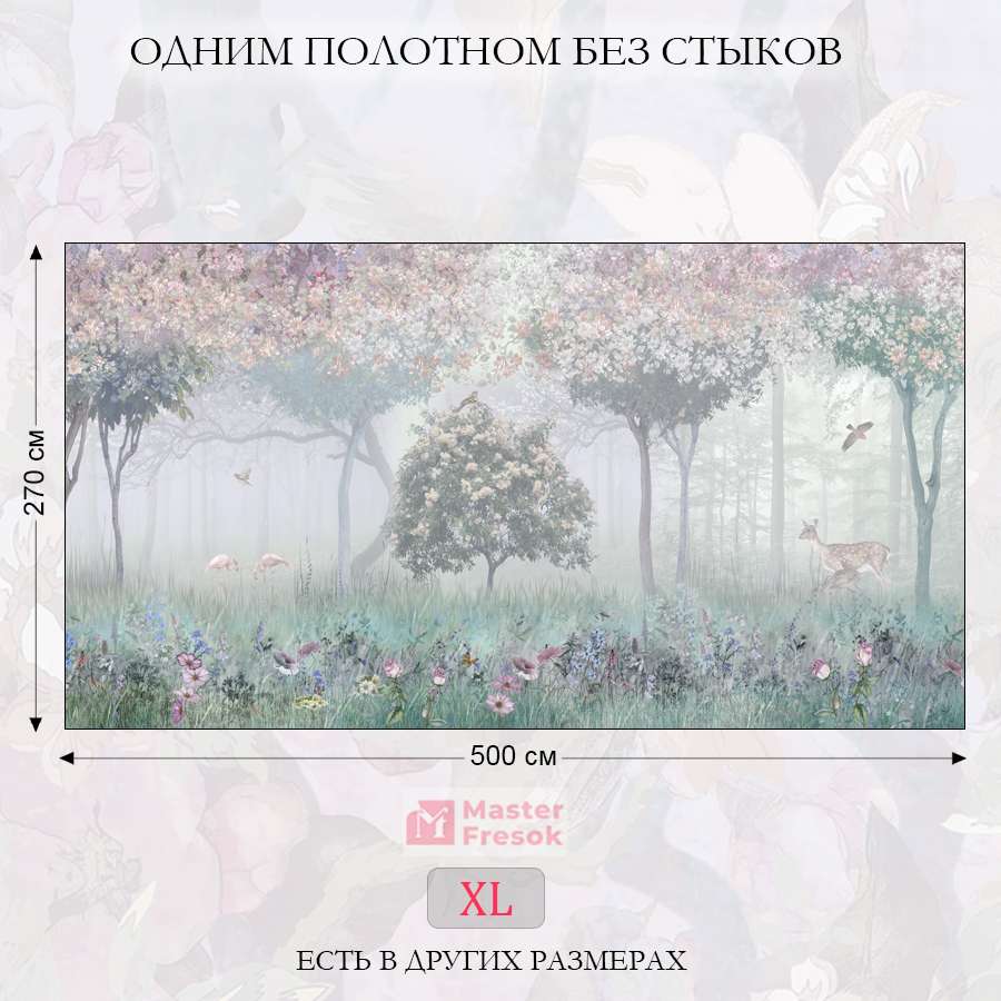 Бесшовные фотообои Волшебный лес и его обитатели, артикул 13-022, прекрасно подойдут к любому помещению: в гостиную, в спальню, в кухню или в детскую и украсят ваш интерьер. Купить фотообои в интернет магазине MasterFresok можно в нескольких типовых размерах:
