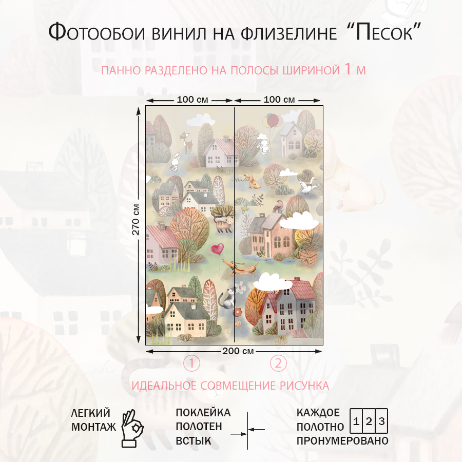 Бесшовные фотообои Домики в детскую, артикул 13-211, прекрасно подойдут к любому помещению: в гостиную, в спальню, в кухню или в детскую и украсят ваш интерьер. Купить фотообои в интернет магазине MasterFresok можно в нескольких типовых размерах: