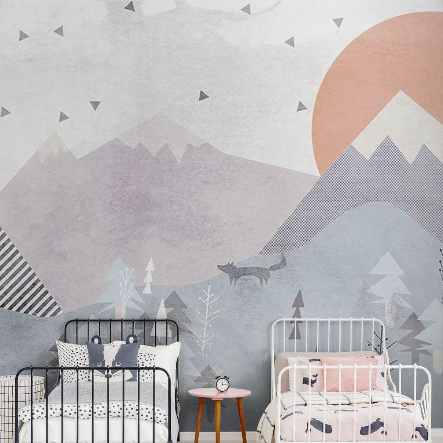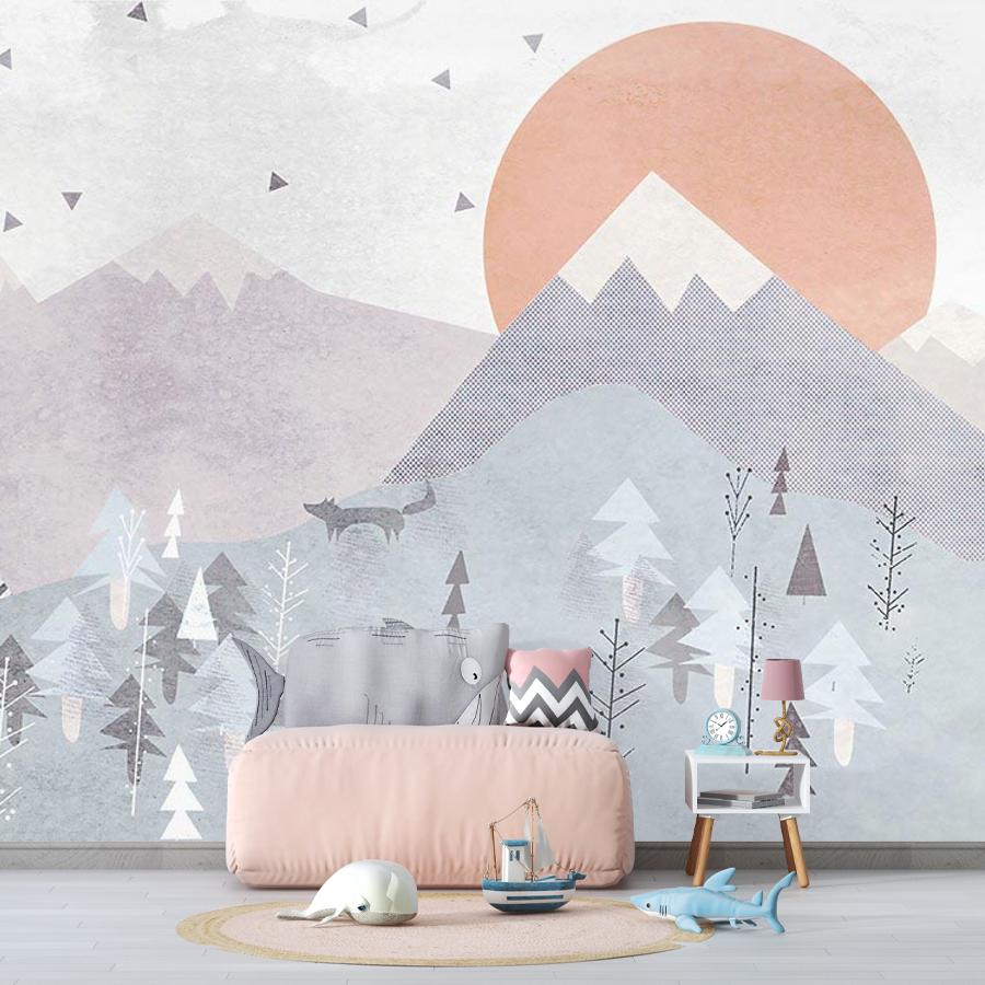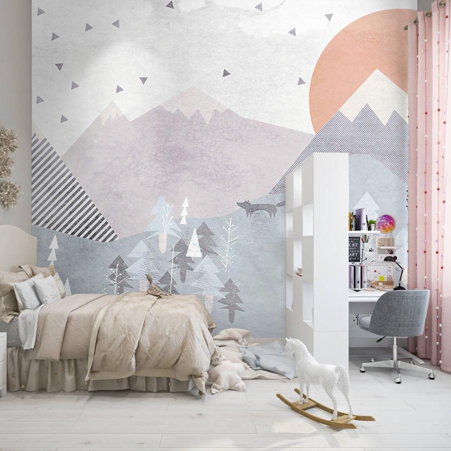 Бесшовные фотообои Геометрический лес в горах, артикул 14-327, прекрасно подойдут к любому помещению: в гостиную, в спальню, в кухню или в детскую и украсят ваш интерьер. Купить фотообои в интернет магазине MasterFresok можно в нескольких типовых размерах: