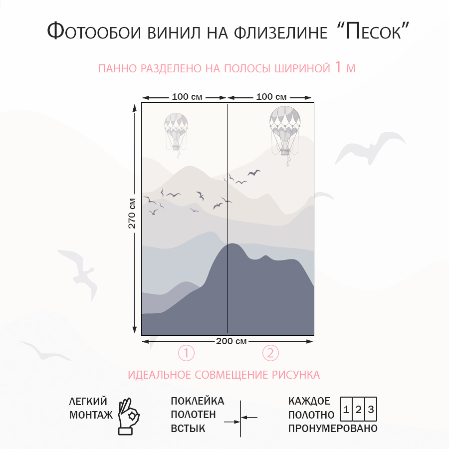 Фотообои Песок: плотность 200 г/м²; толщина 0,3 мм; светостойкие ✅; ширина полос 1м ✅; легкий монтаж ✅; срок службы: более 5 лет; легкий рельеф песка; легкая влажная уборка ✅