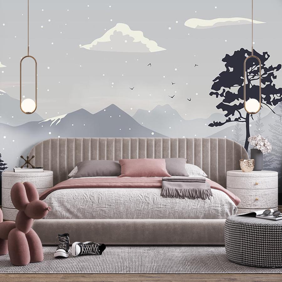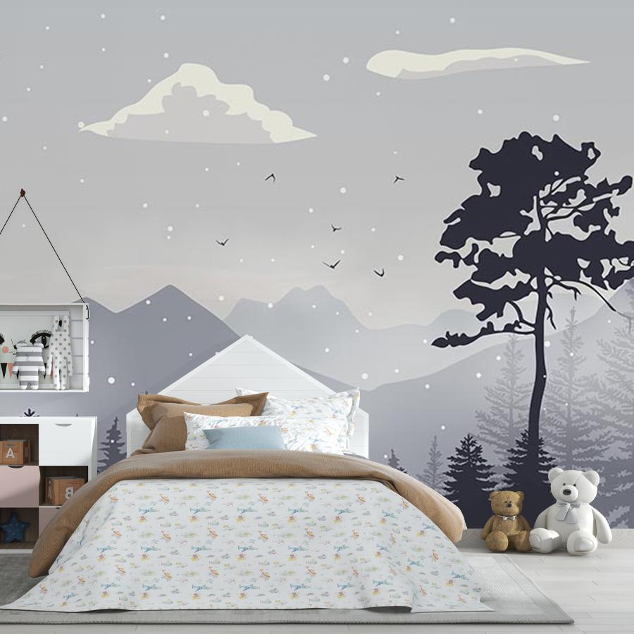 Бесшовные фотообои Горы в тумане за лесом, артикул 14-348, прекрасно подойдут к любому помещению: в гостиную, в спальню, в кухню или в детскую и украсят ваш интерьер. Купить фотообои в интернет магазине MasterFresok можно в нескольких типовых размерах: