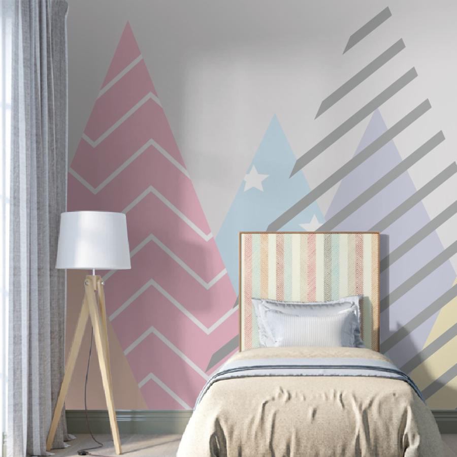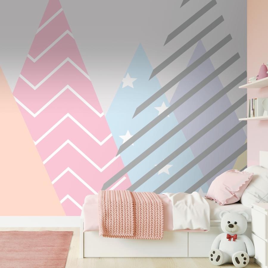 Бесшовные фотообои Геометрические горы в детскую, артикул 14-719, прекрасно подойдут к любому помещению: в гостиную, в спальню, в кухню или в детскую и украсят ваш интерьер. Купить фотообои в интернет магазине MasterFresok можно в нескольких типовых размерах: