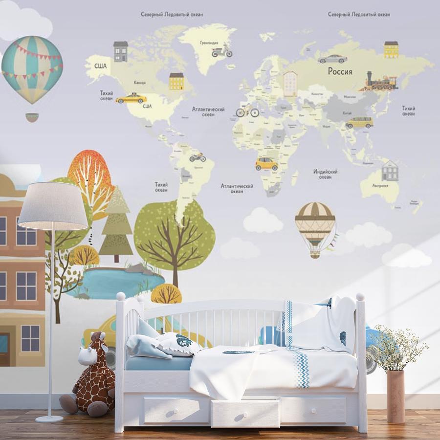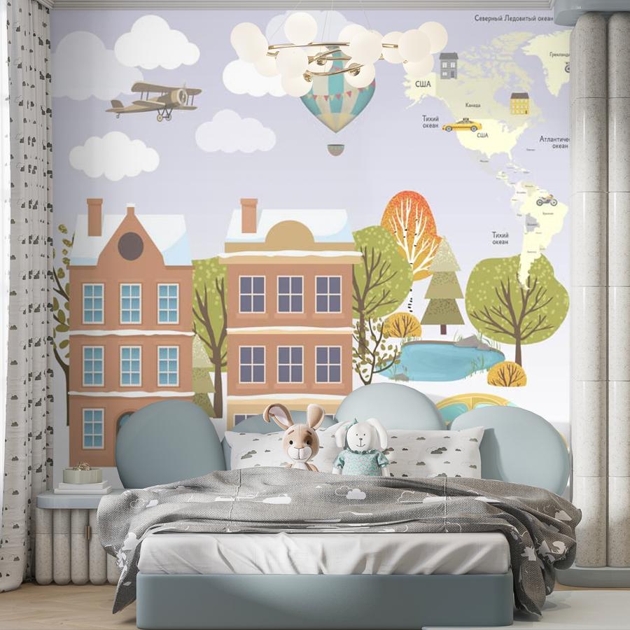 Фотообои Домики и карта мира 14-263-S-Холст