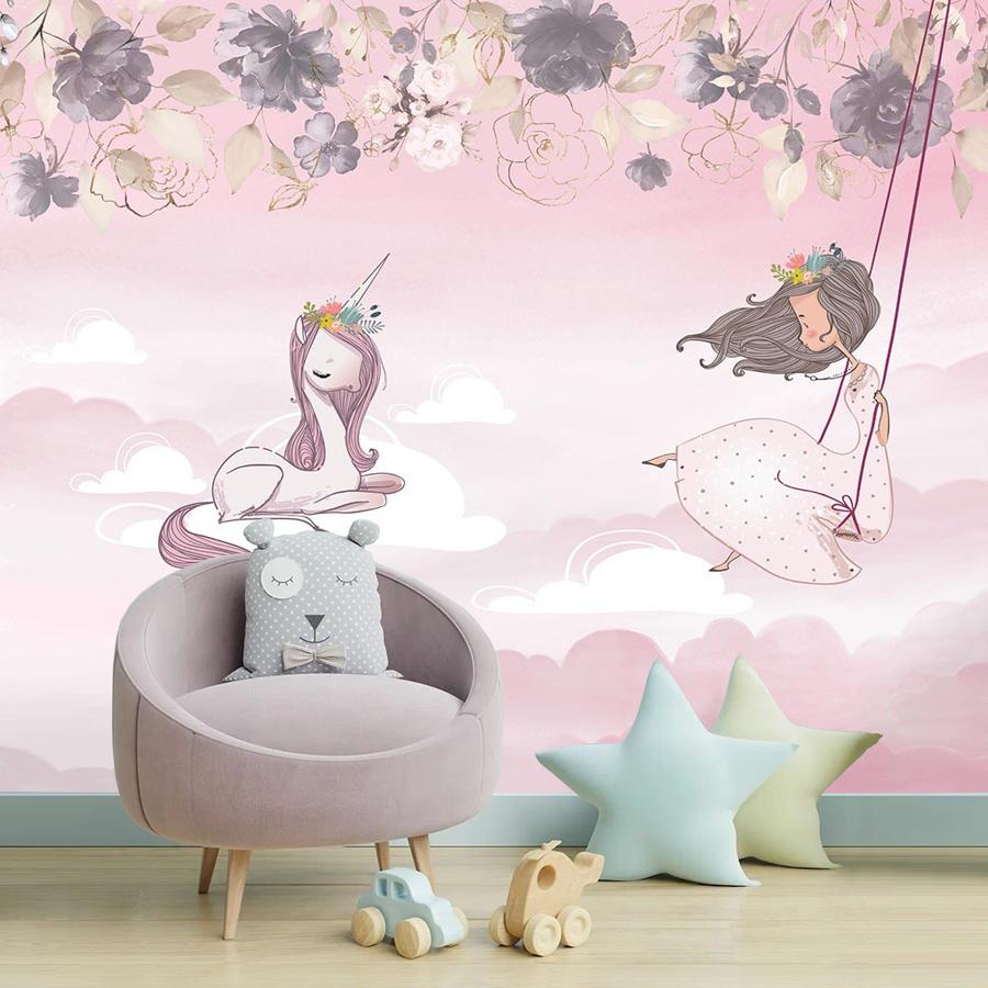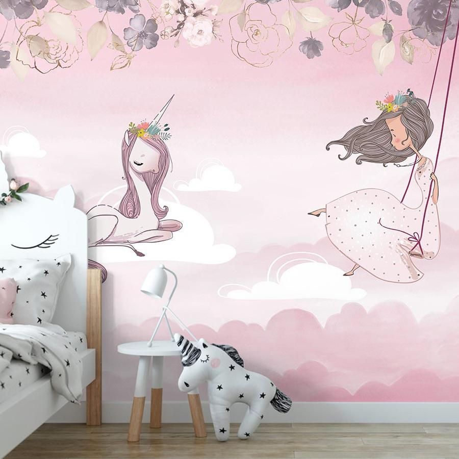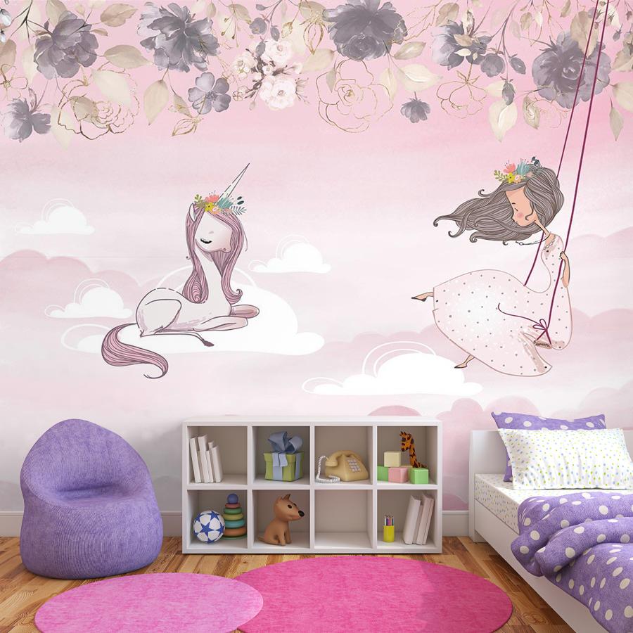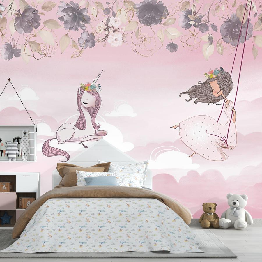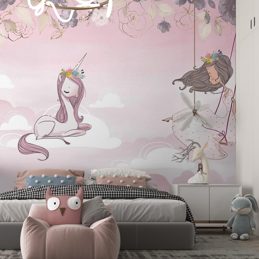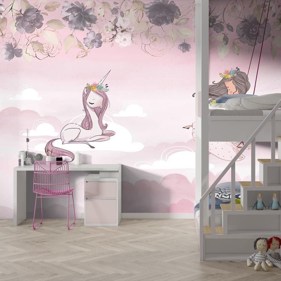 Бесшовные фотообои Девочка с единорогом, артикул 14-438, прекрасно подойдут к любому помещению: в гостиную, в спальню, в кухню или в детскую и украсят ваш интерьер. Купить фотообои в интернет магазине MasterFresok можно в нескольких типовых размерах: