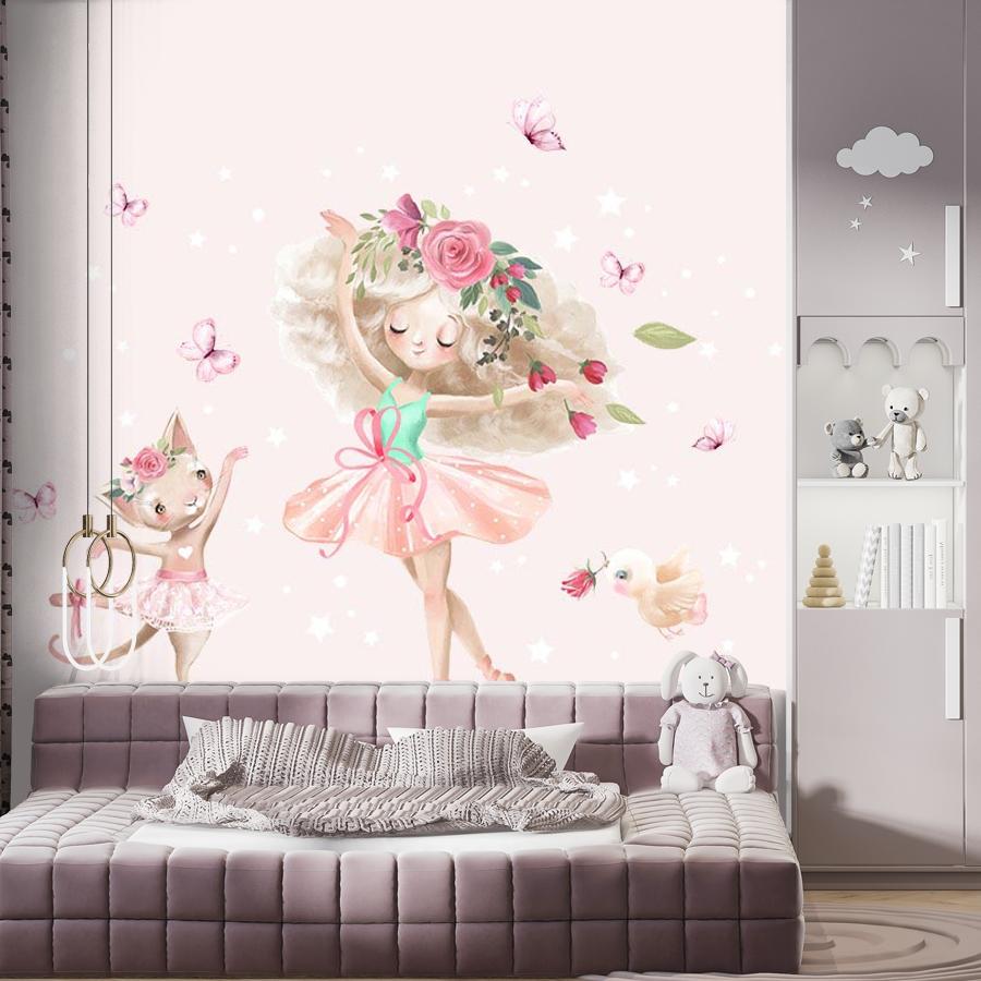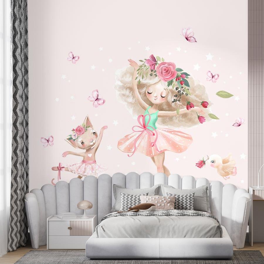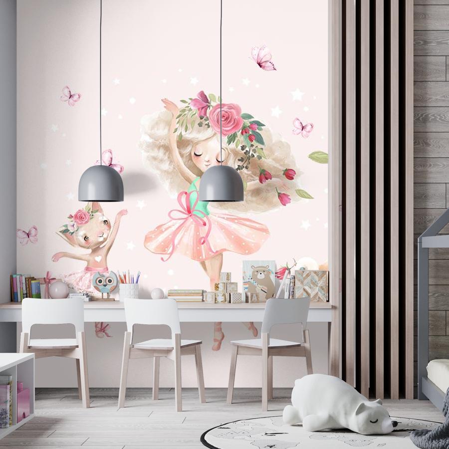 Бесшовные фотообои Танец маленькой балерины , артикул 14-456, прекрасно подойдут к любому помещению: в гостиную, в спальню, в кухню или в детскую и украсят ваш интерьер. Купить фотообои в интернет магазине MasterFresok можно в нескольких типовых размерах: