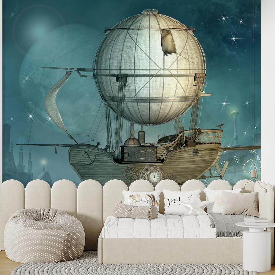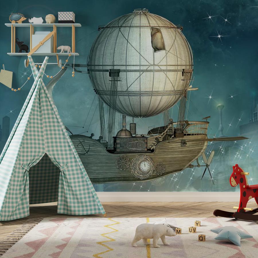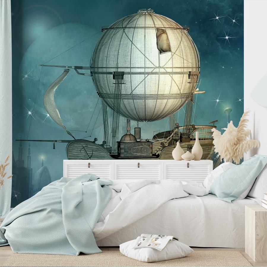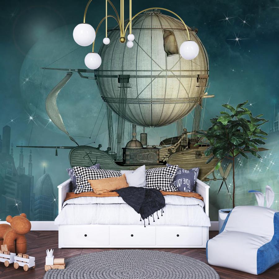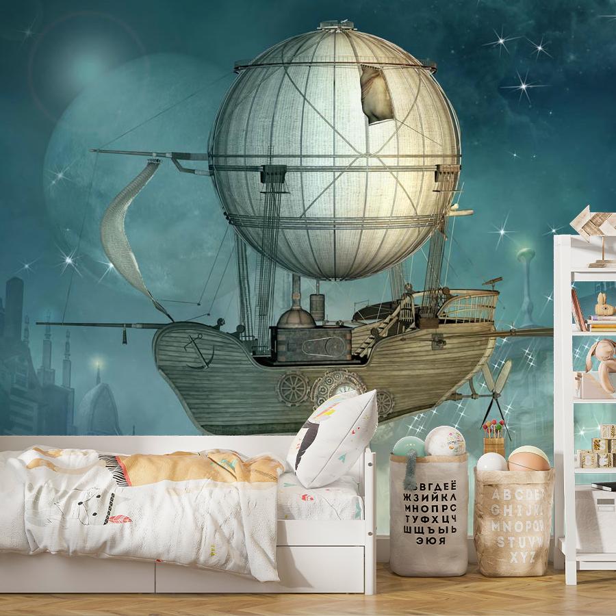 Бесшовные фотообои Летающий корабль, артикул 12-1177, прекрасно подойдут к любому помещению: в гостиную, в спальню, в кухню или в детскую и украсят ваш интерьер. Купить фотообои в интернет магазине MasterFresok можно в нескольких типовых размерах: