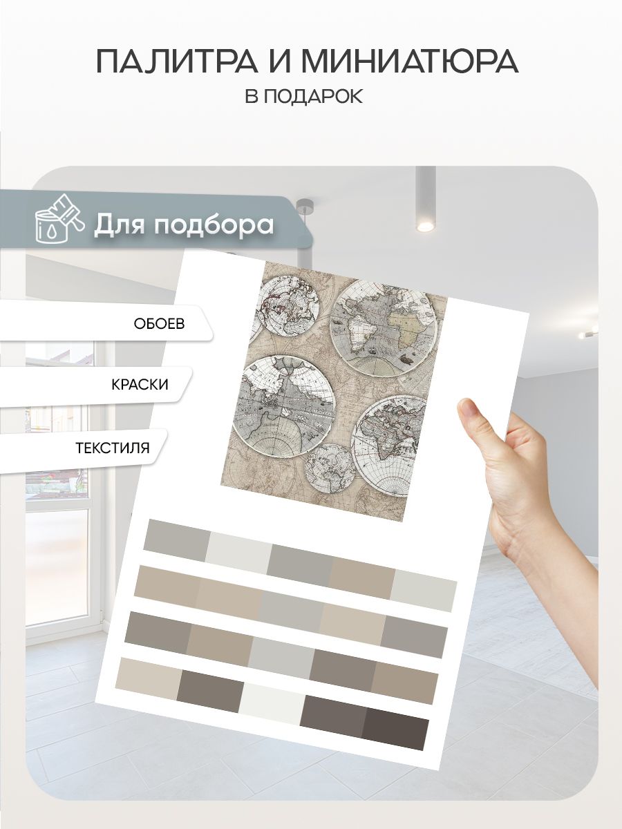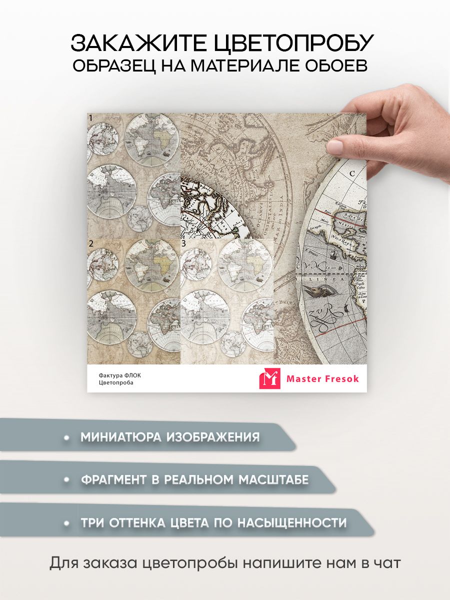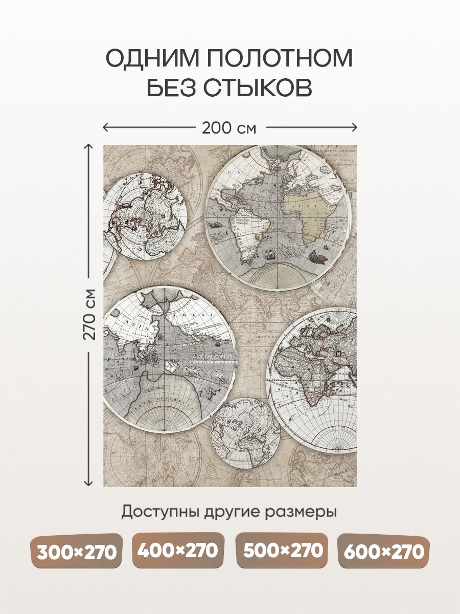 Бесшовные фотообои Старинная карта мира, артикул 13-067, прекрасно подойдут к любому помещению: в гостиную, в спальню, в кухню или в детскую и украсят ваш интерьер. Купить фотообои в интернет магазине MasterFresok можно в нескольких типовых размерах: