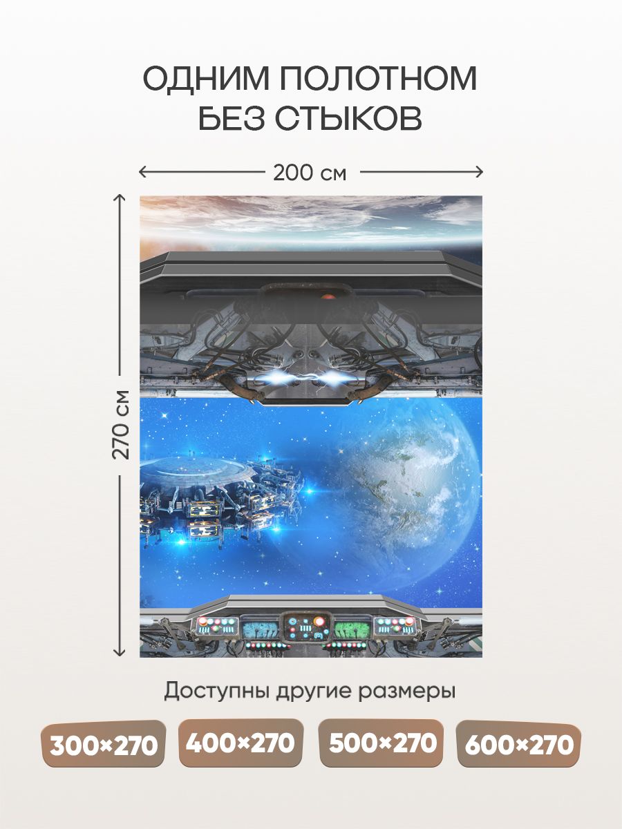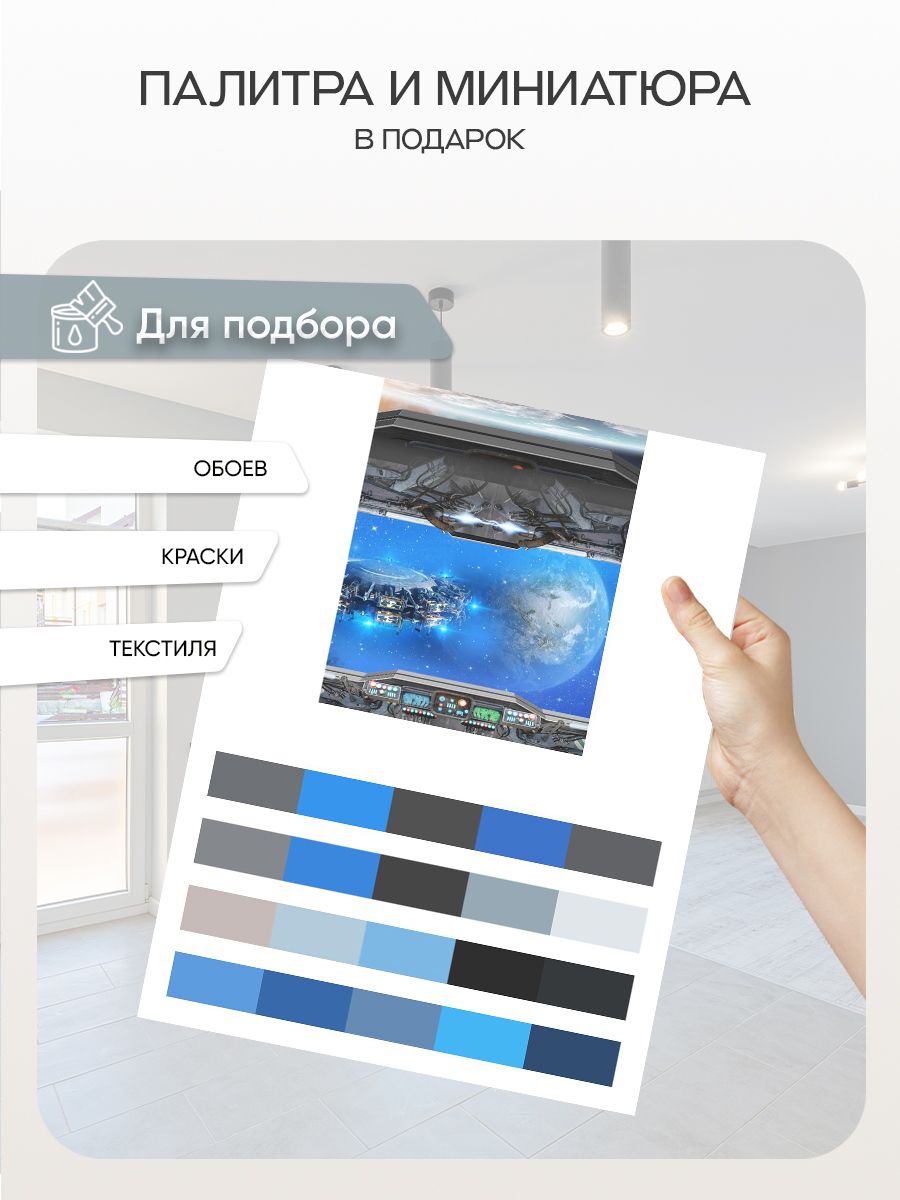Бесшовные фотообои Окно космического корабля, артикул 13-069, прекрасно подойдут к любому помещению: в гостиную, в спальню, в кухню или в детскую и украсят ваш интерьер. Купить фотообои в интернет магазине MasterFresok можно в нескольких типовых размерах: