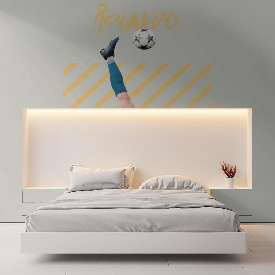 Бесшовные фотообои Рональдо удар по мячу, артикул 14-1030, прекрасно подойдут к любому помещению: в гостиную, в спальню, в кухню или в детскую и украсят ваш интерьер. Купить фотообои в интернет магазине MasterFresok можно в нескольких типовых размерах: