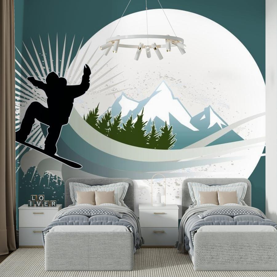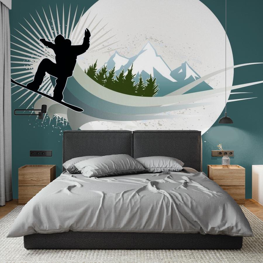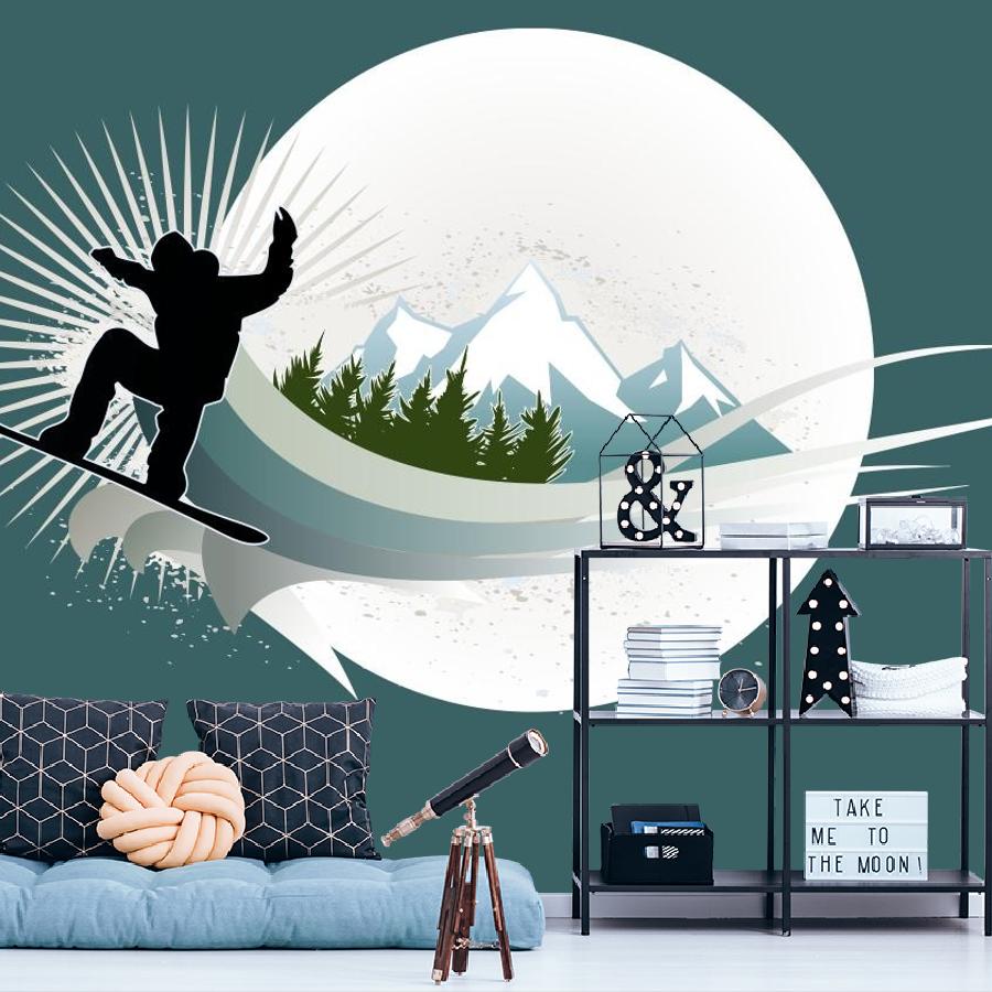 Бесшовные фотообои Сноубордист, артикул 14-782, прекрасно подойдут к любому помещению: в гостиную, в спальню, в кухню или в детскую и украсят ваш интерьер. Купить фотообои в интернет магазине MasterFresok можно в нескольких типовых размерах: