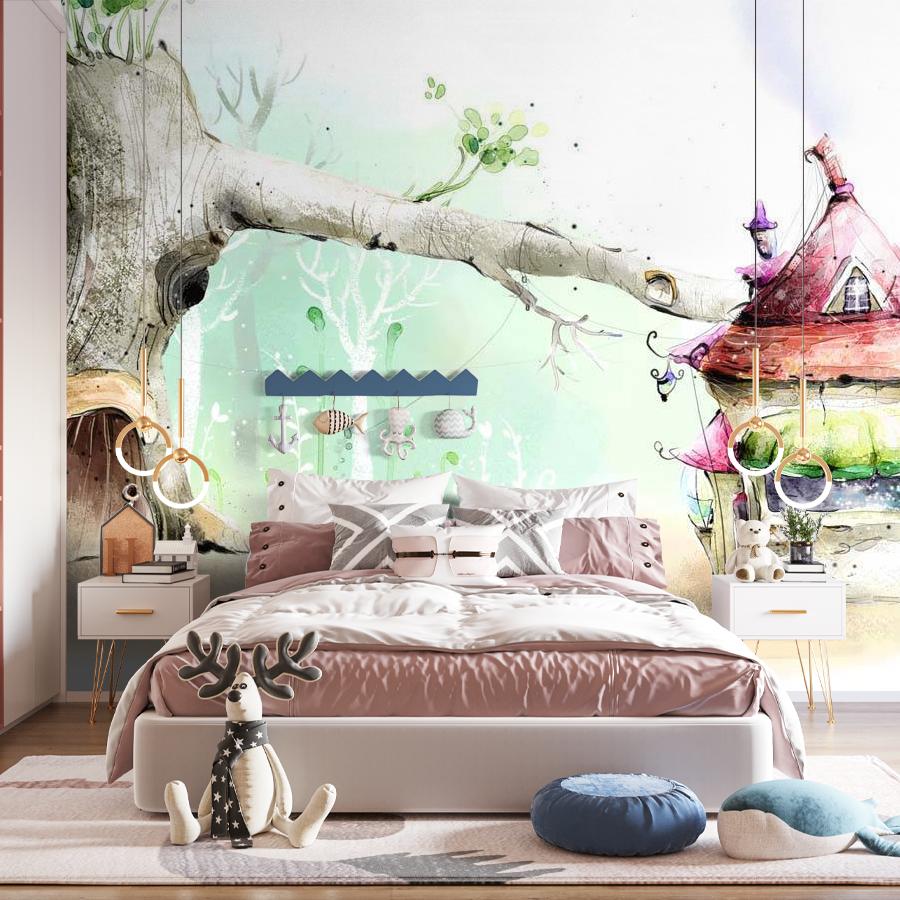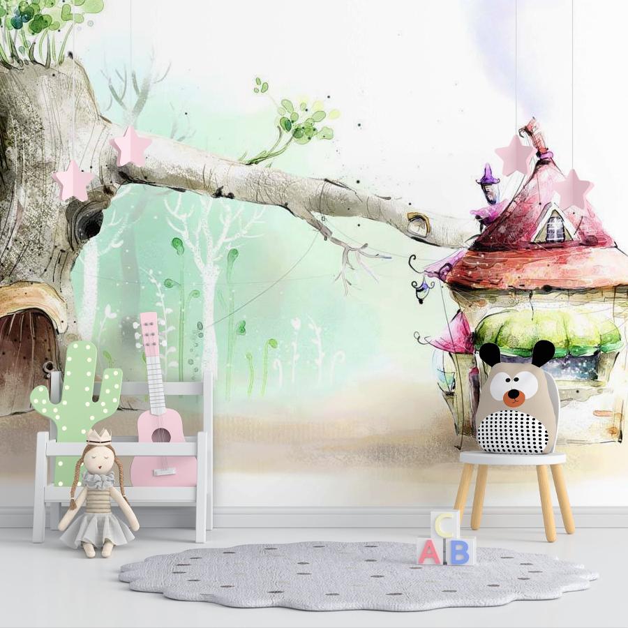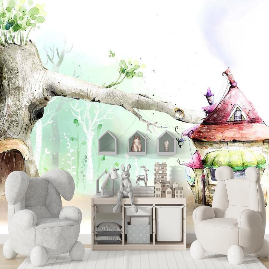 Бесшовные фотообои Дом в дереве, артикул 12-310, прекрасно подойдут к любому помещению: в гостиную, в спальню, в кухню или в детскую и украсят ваш интерьер. Купить фотообои в интернет магазине MasterFresok можно в нескольких типовых размерах:
