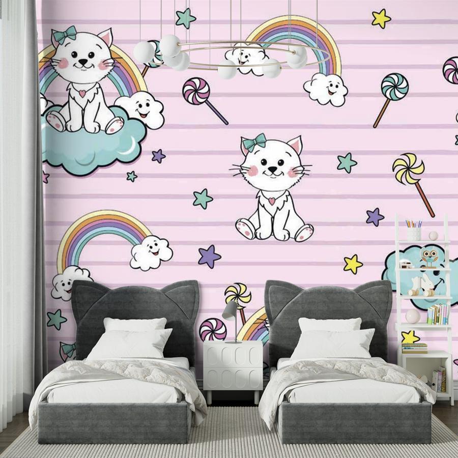 Фотообои Котята на облаках на розовом фоне 12-414-S-Холст