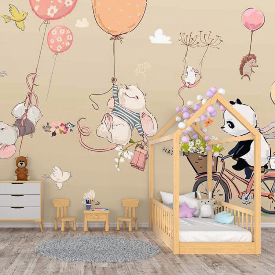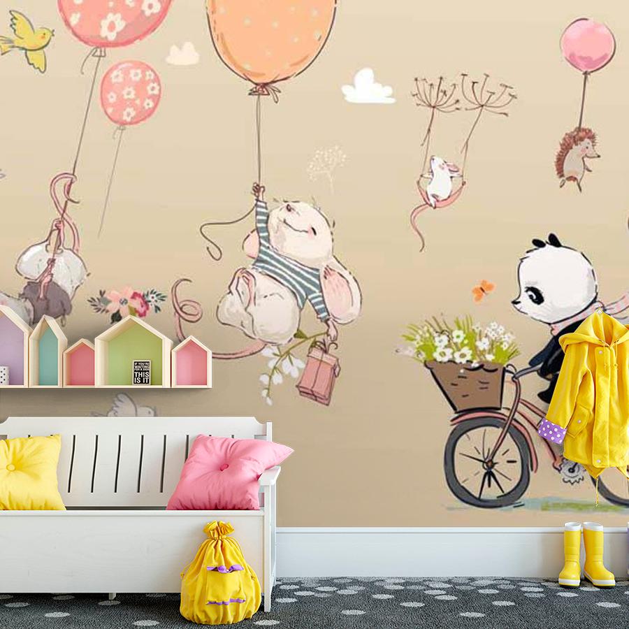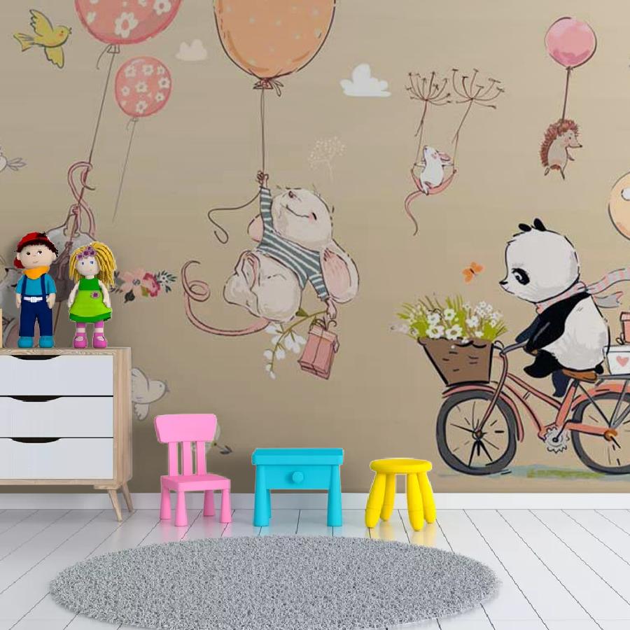 Бесшовные фотообои Звери на шарах на коричневом фоне, артикул 12-334, прекрасно подойдут к любому помещению: в гостиную, в спальню, в кухню или в детскую и украсят ваш интерьер. Купить фотообои в интернет магазине MasterFresok можно в нескольких типовых размерах: