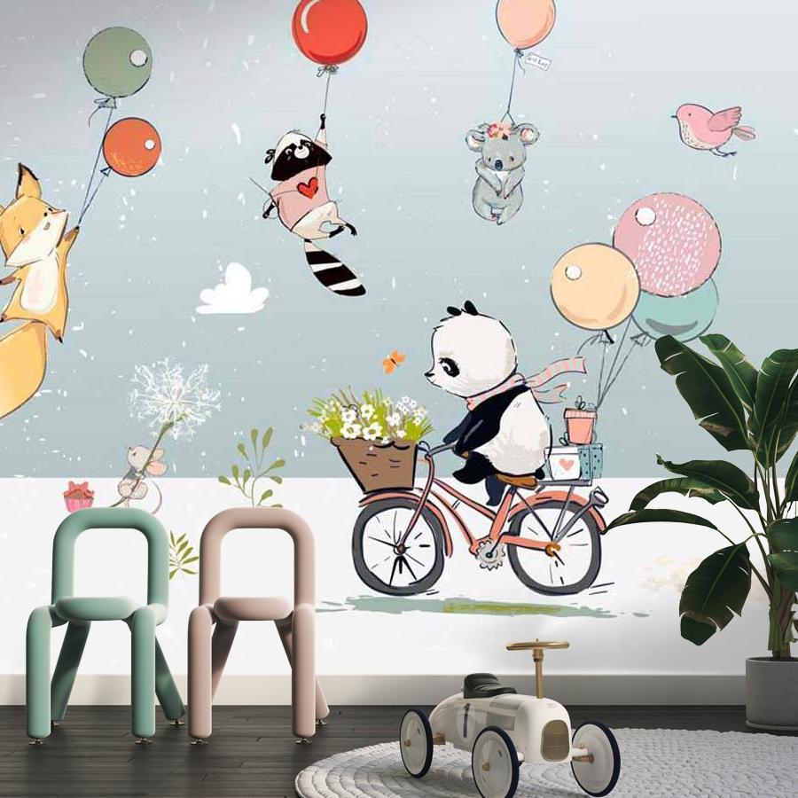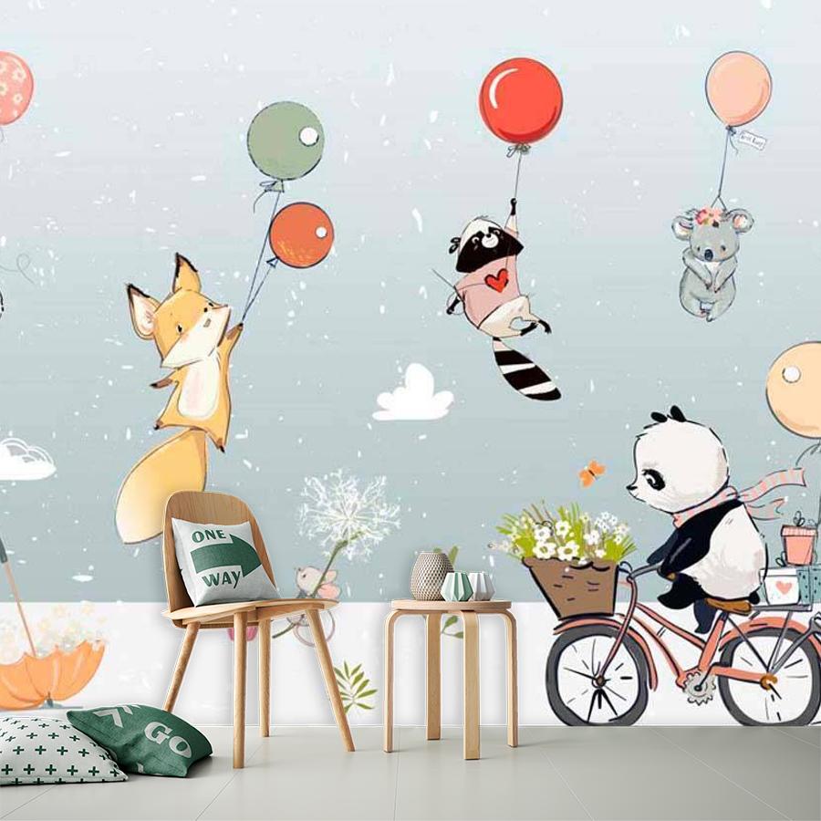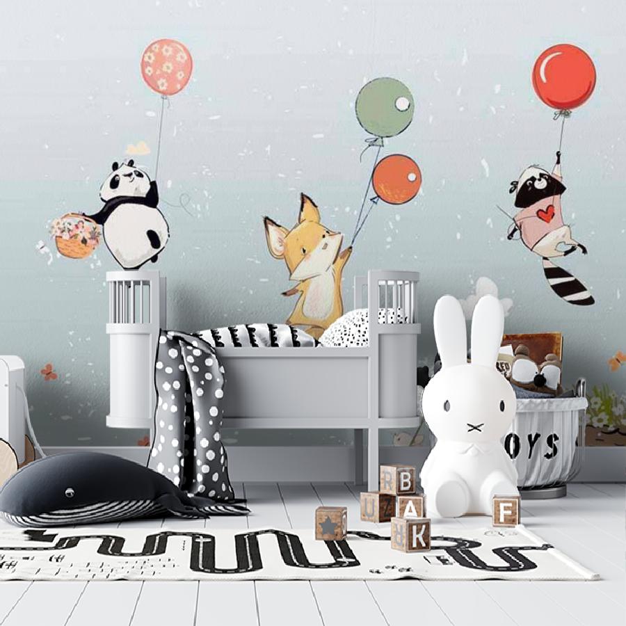 Бесшовные фотообои Звери на шарах на сером фоне, артикул 12-336, прекрасно подойдут к любому помещению: в гостиную, в спальню, в кухню или в детскую и украсят ваш интерьер. Купить фотообои в интернет магазине MasterFresok можно в нескольких типовых размерах: