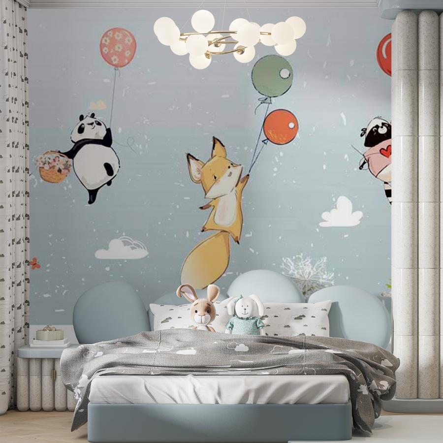 Фотообои Звери на шарах на сером фоне 12-336-S-Холст