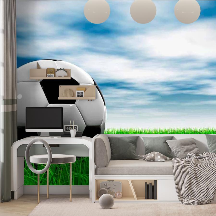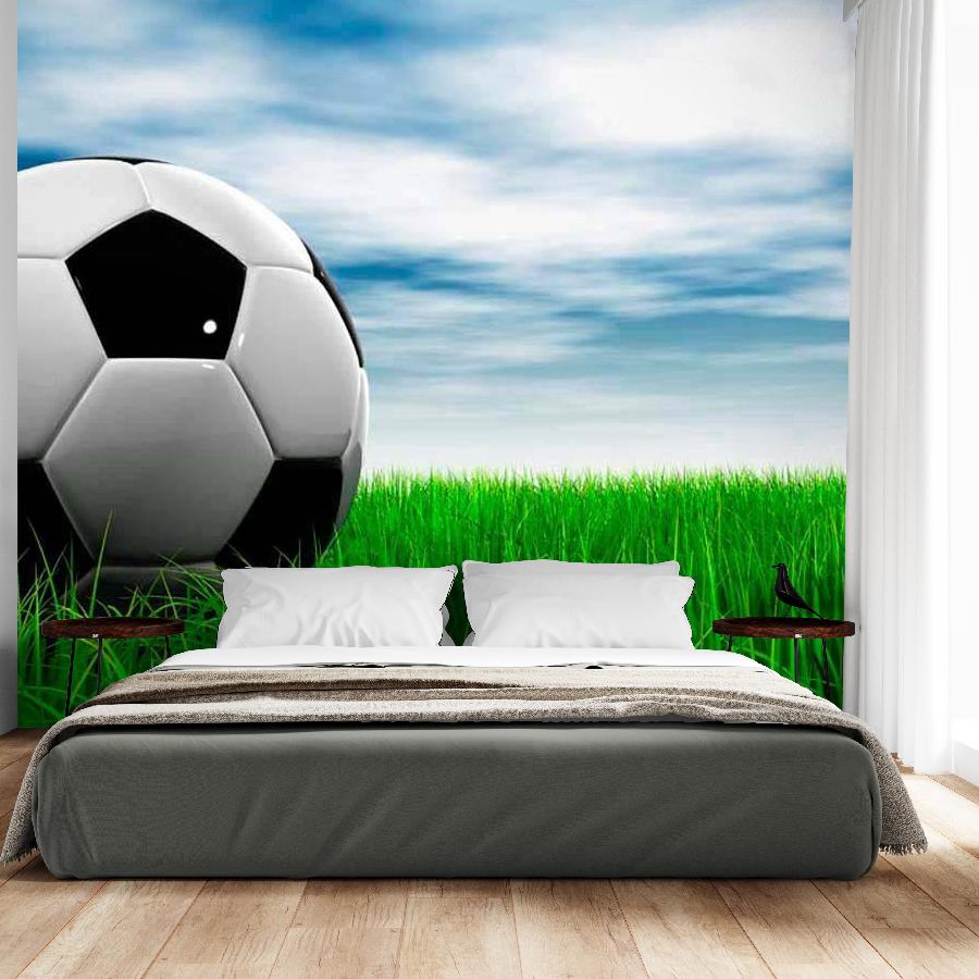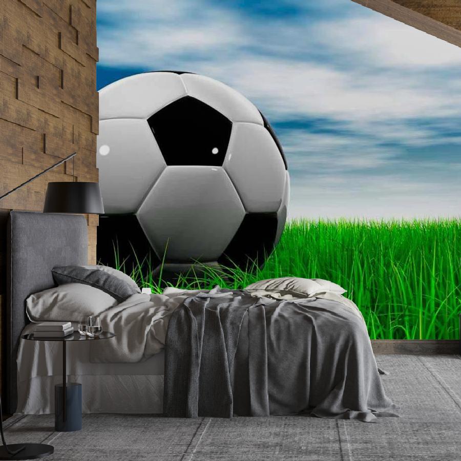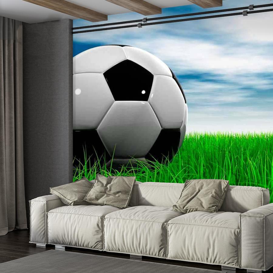 Бесшовные фотообои Мяч на футбольном поле, артикул 12-386, прекрасно подойдут к любому помещению: в гостиную, в спальню, в кухню или в детскую и украсят ваш интерьер. Купить фотообои в интернет магазине MasterFresok можно в нескольких типовых размерах: