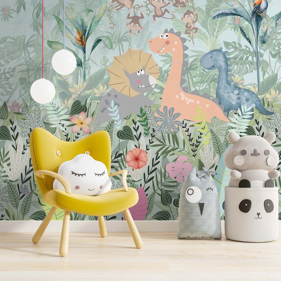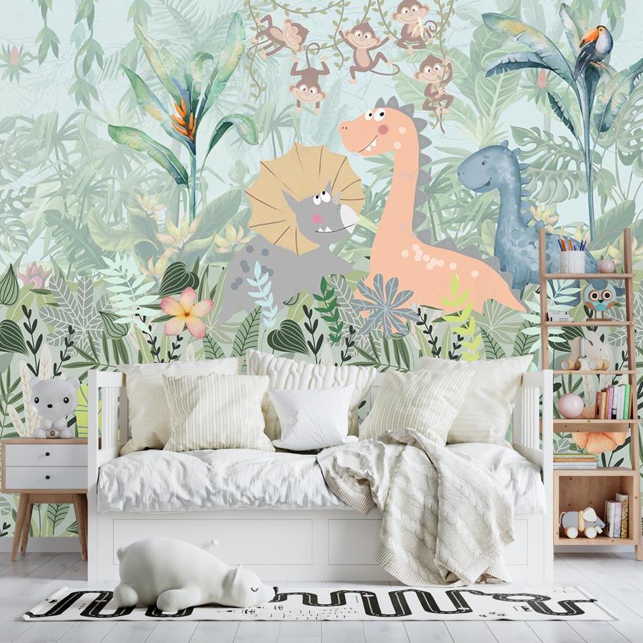 Бесшовные фотообои Милые динозаврики , артикул 13-502, прекрасно подойдут к любому помещению: в гостиную, в спальню, в кухню или в детскую и украсят ваш интерьер. Купить фотообои в интернет магазине MasterFresok можно в нескольких типовых размерах: