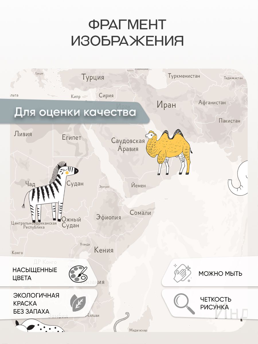 Фотообои Карта мира с животными 12-1317-L-Холст
