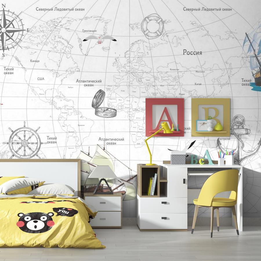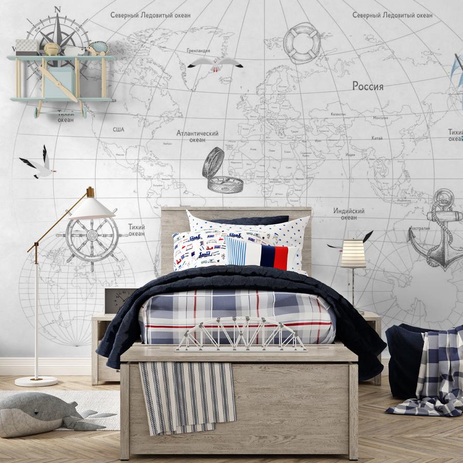 Бесшовные фотообои Черно-белая карта мира, артикул 14-280, прекрасно подойдут к любому помещению: в гостиную, в спальню, в кухню или в детскую и украсят ваш интерьер. Купить фотообои в интернет магазине MasterFresok можно в нескольких типовых размерах: