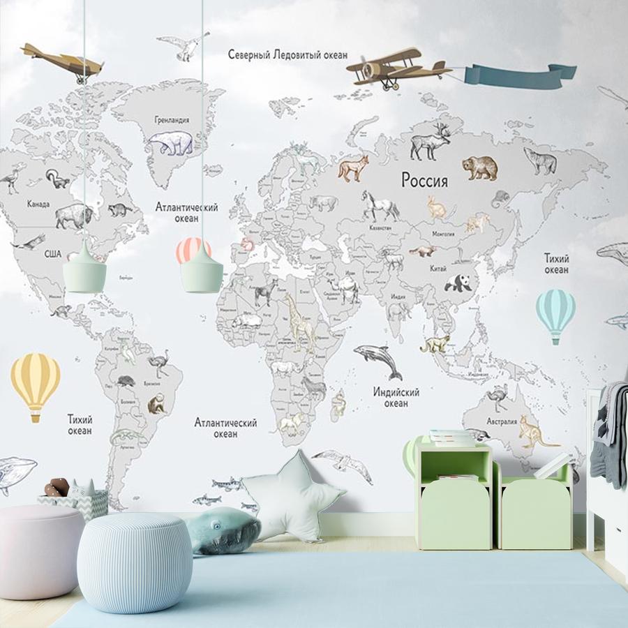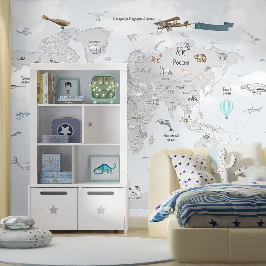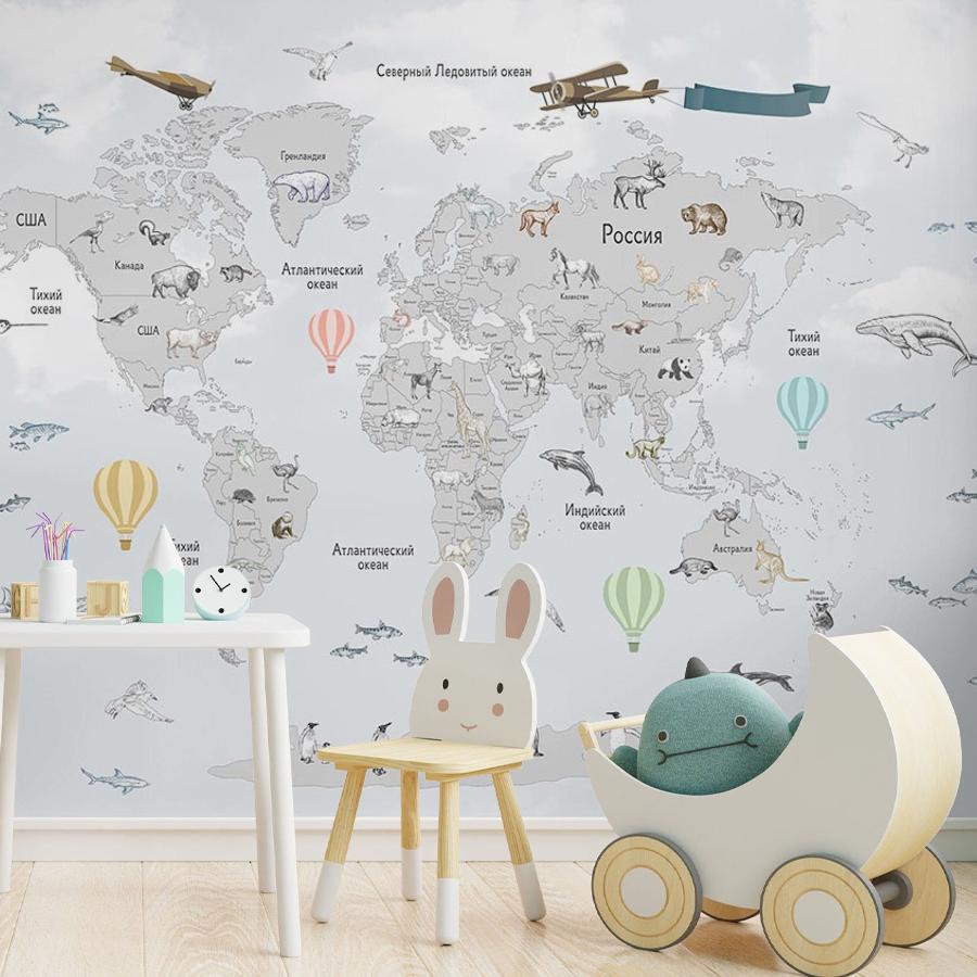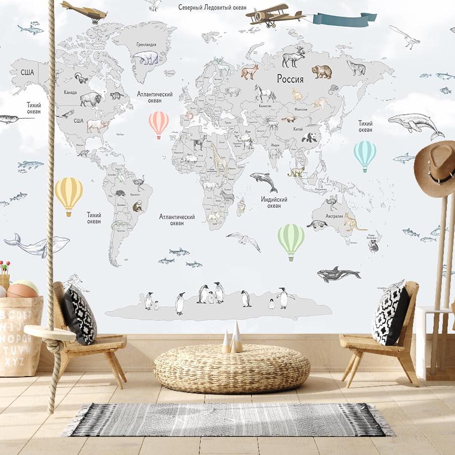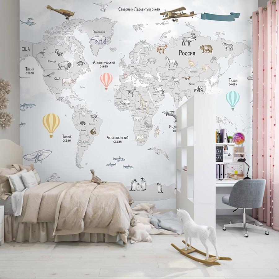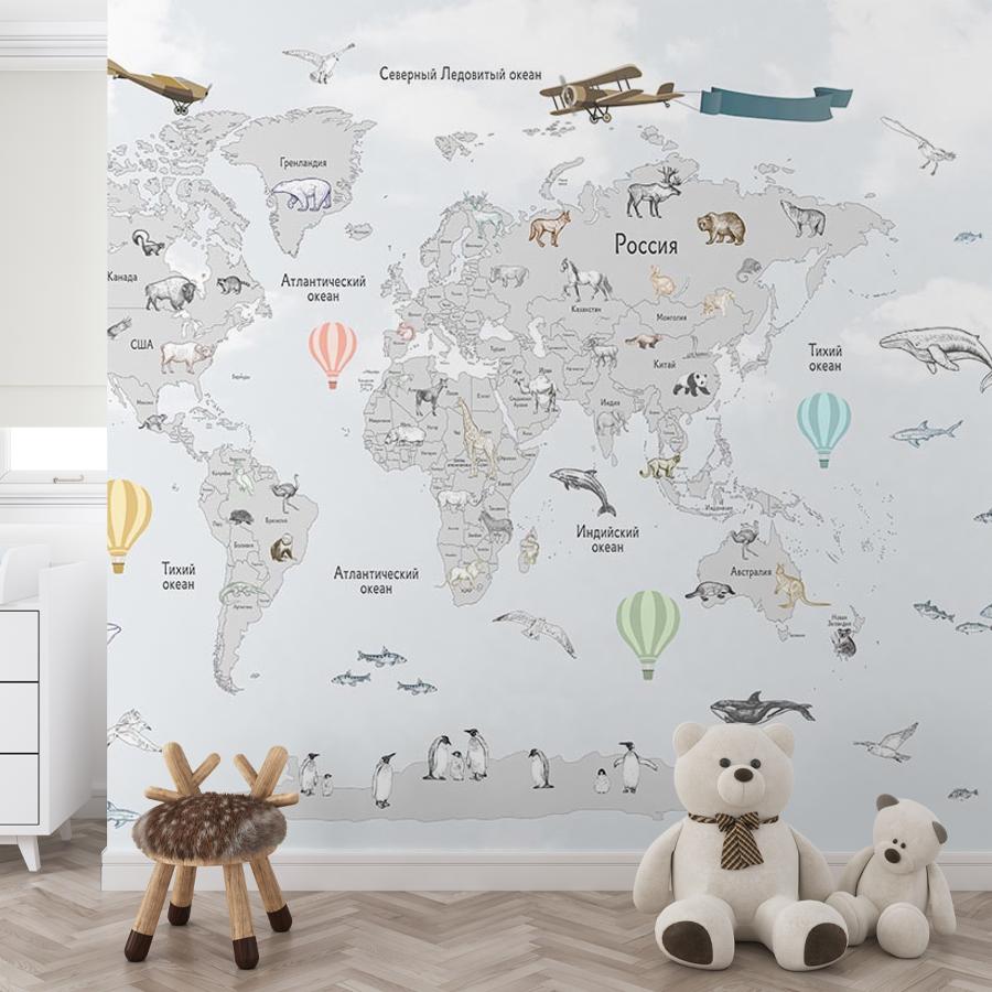 Фотообои Светлая карта мира в детскую 14-283-M-Холст