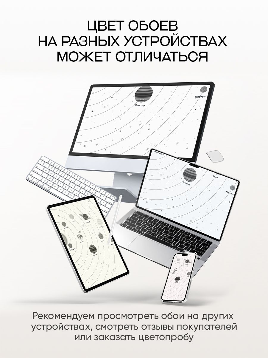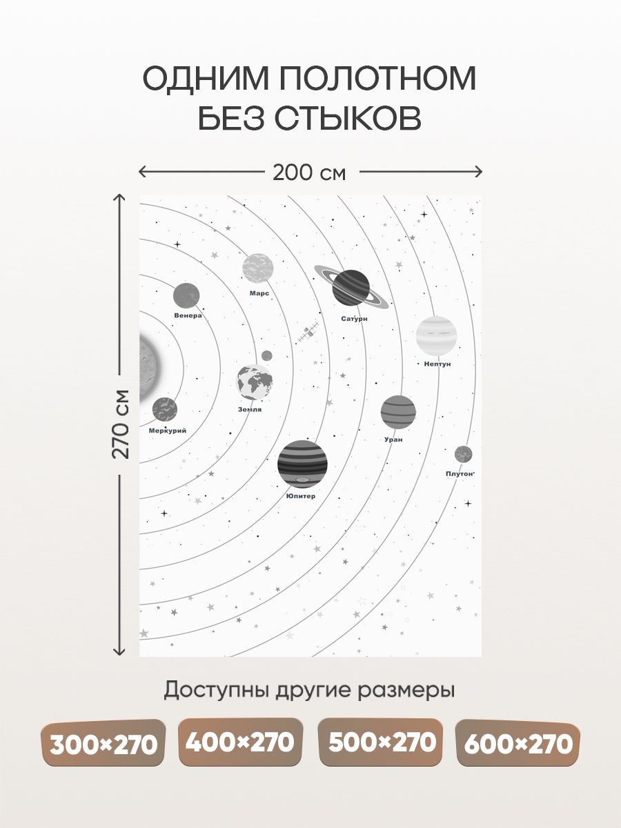 Бесшовные фотообои Солнечная система, артикул 13-213, прекрасно подойдут к любому помещению: в гостиную, в спальню, в кухню или в детскую и украсят ваш интерьер. Купить фотообои в интернет магазине MasterFresok можно в нескольких типовых размерах: