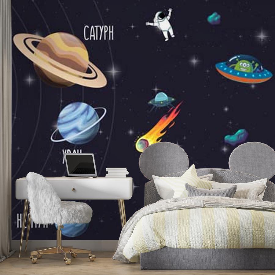 Бесшовные фотообои Карта планет , артикул 14-167, прекрасно подойдут к любому помещению: в гостиную, в спальню, в кухню или в детскую и украсят ваш интерьер. Купить фотообои в интернет магазине MasterFresok можно в нескольких типовых размерах: