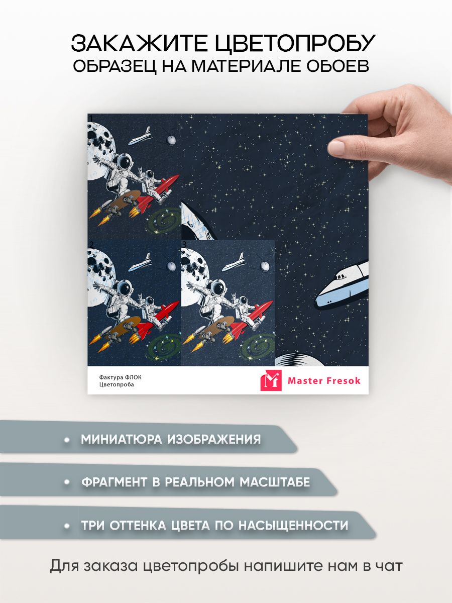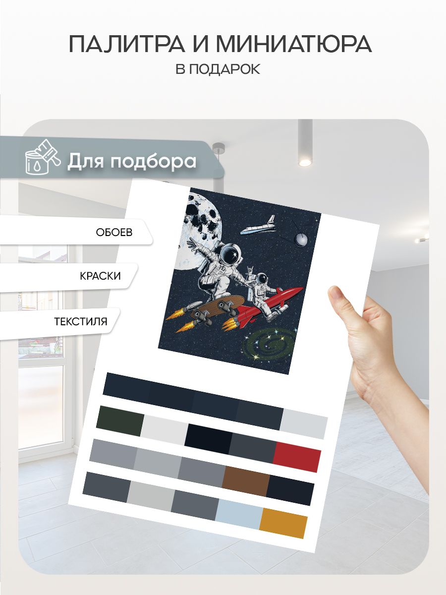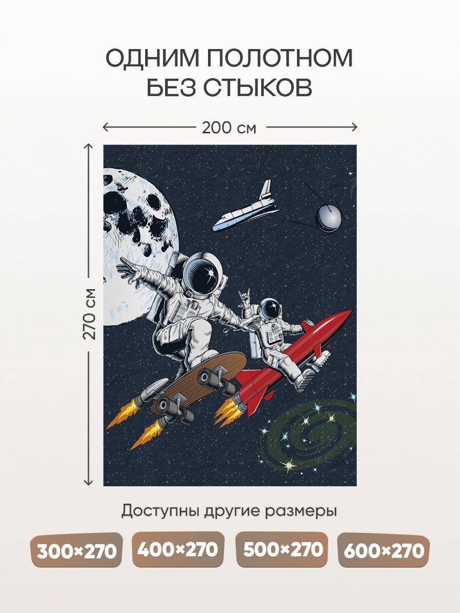 Бесшовные фотообои Космонавт-скейтбордист в детскую, артикул 14-733, прекрасно подойдут к любому помещению: в гостиную, в спальню, в кухню или в детскую и украсят ваш интерьер. Купить фотообои в интернет магазине MasterFresok можно в нескольких типовых размерах: