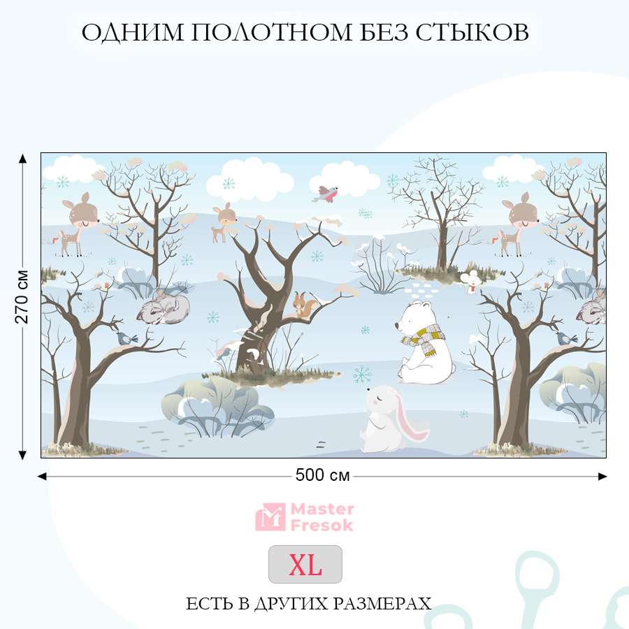 Бесшовные фотообои Животные в зимнем лесу , артикул 13-165, прекрасно подойдут к любому помещению: в гостиную, в спальню, в кухню или в детскую и украсят ваш интерьер. Купить фотообои в интернет магазине MasterFresok можно в нескольких типовых размерах: