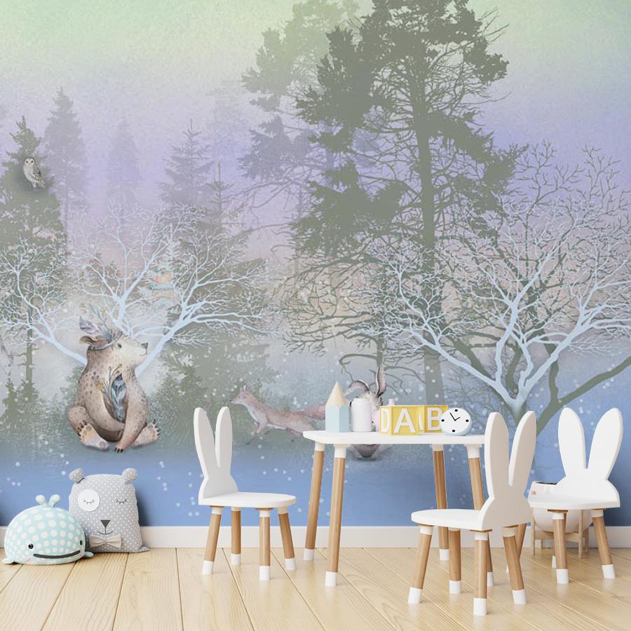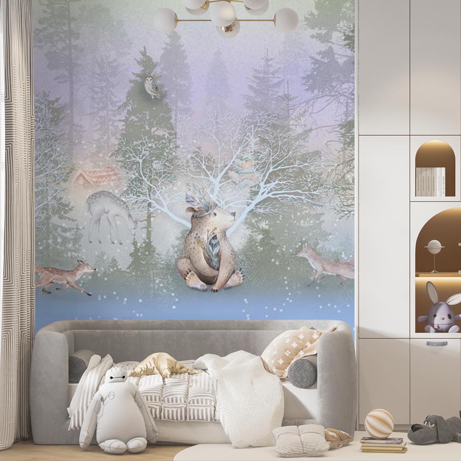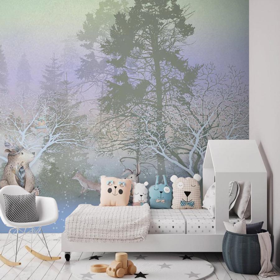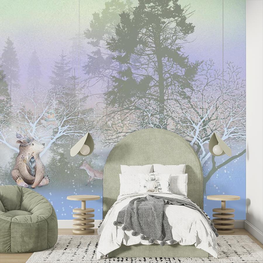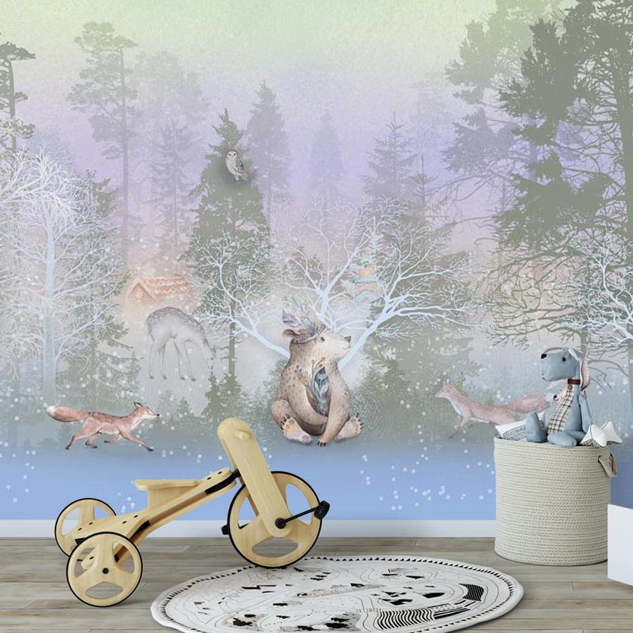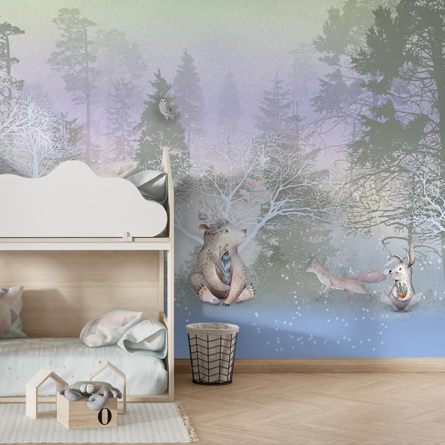 Бесшовные фотообои Сказочный зимний лес, артикул 13-484, прекрасно подойдут к любому помещению: в гостиную, в спальню, в кухню или в детскую и украсят ваш интерьер. Купить фотообои в интернет магазине MasterFresok можно в нескольких типовых размерах: