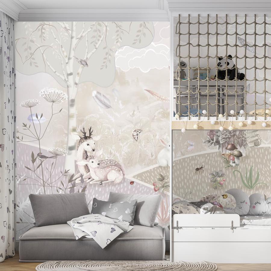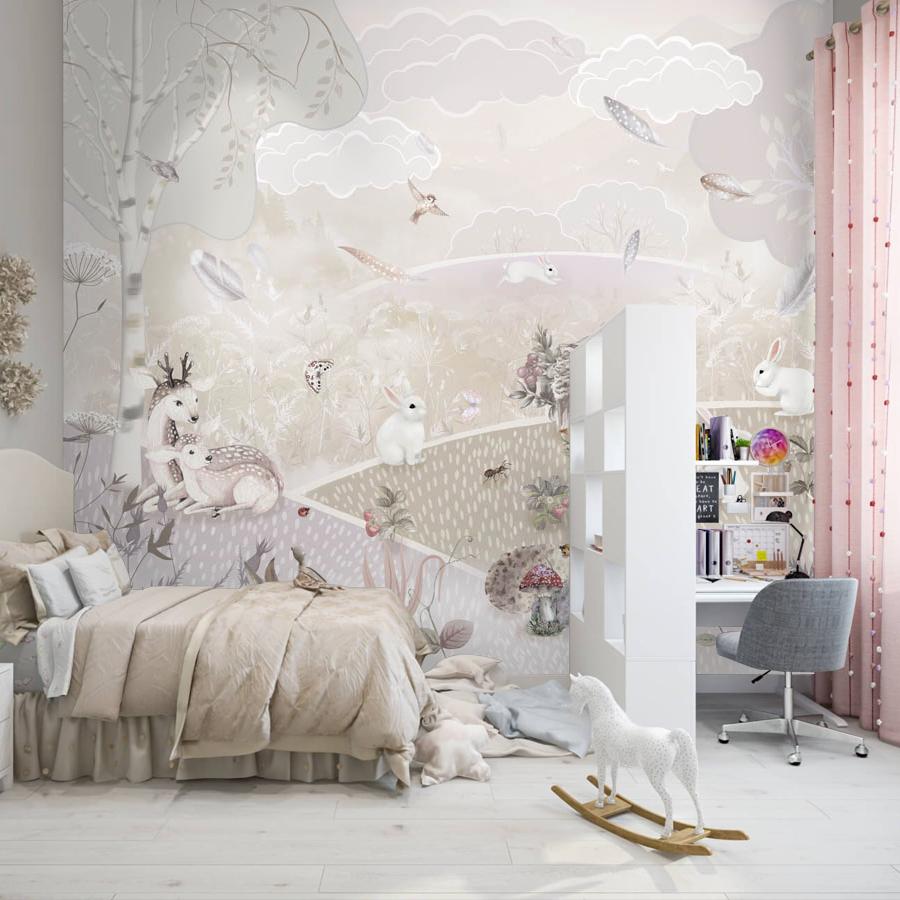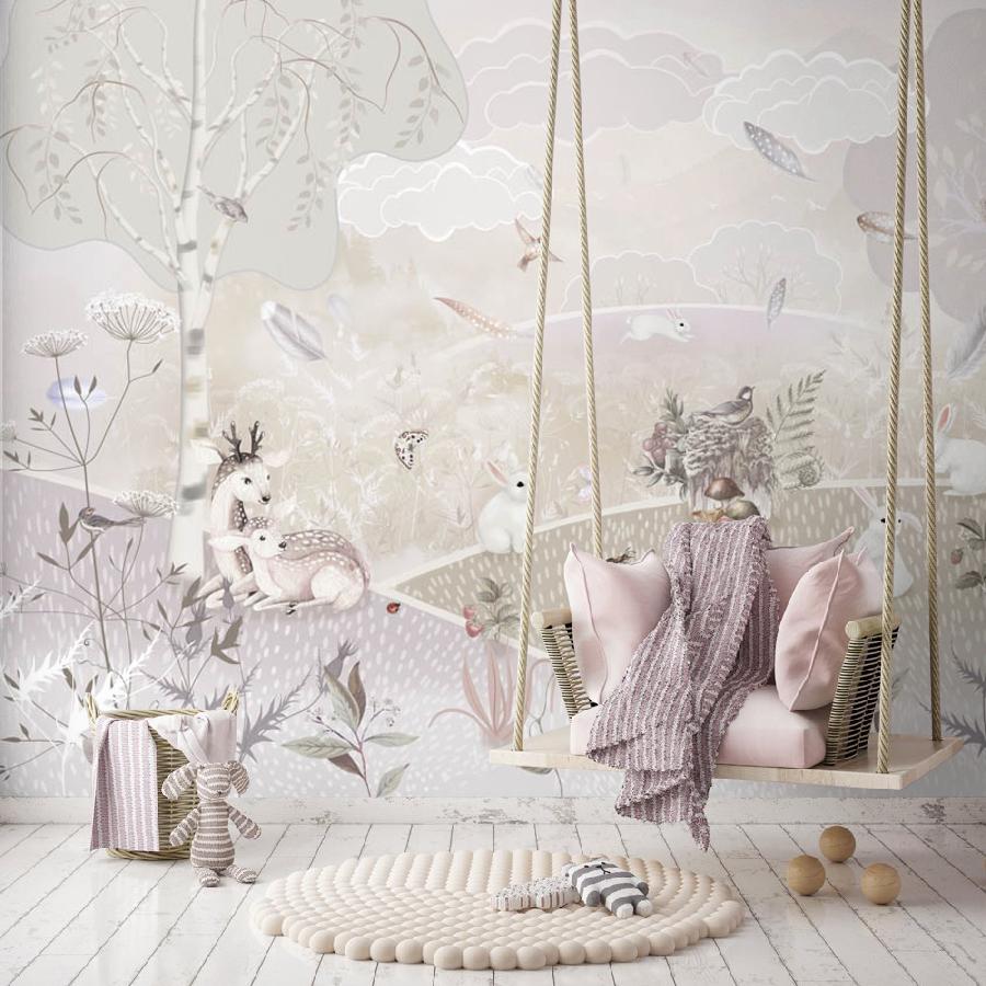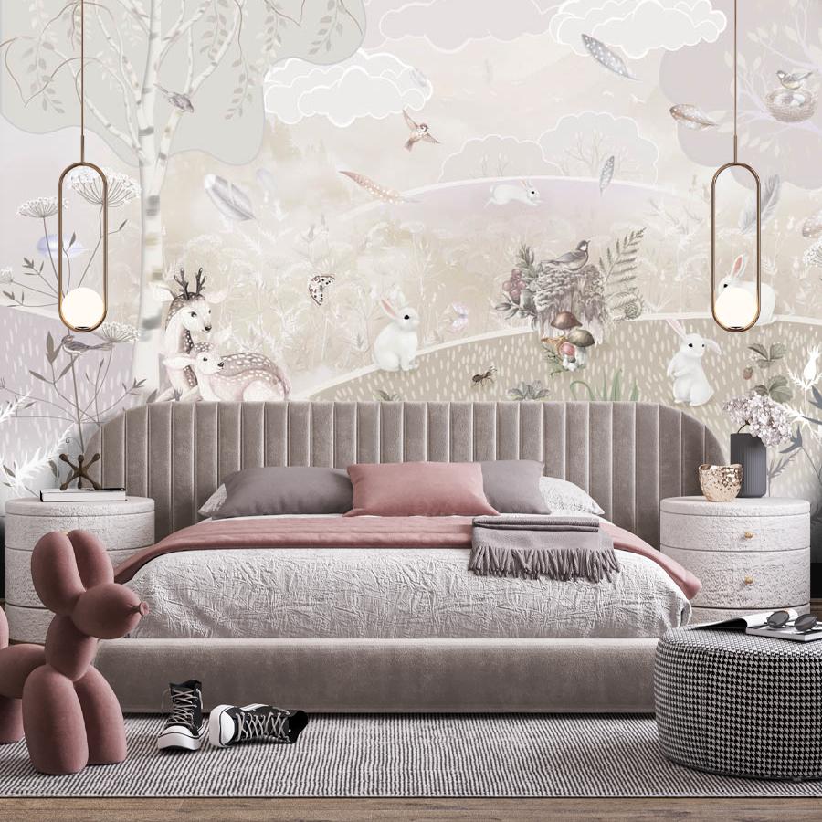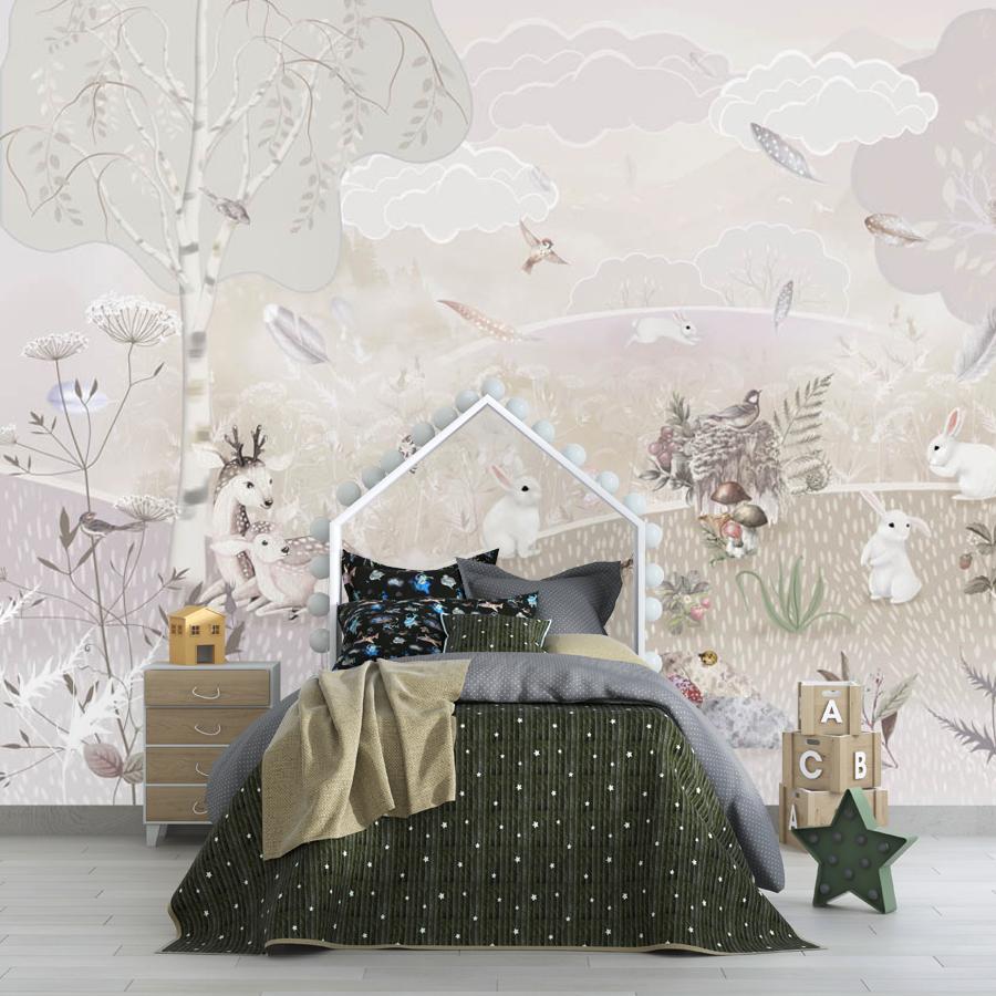 Бесшовные фотообои Полянка со зверятами, артикул 13-617, прекрасно подойдут к любому помещению: в гостиную, в спальню, в кухню или в детскую и украсят ваш интерьер. Купить фотообои в интернет магазине MasterFresok можно в нескольких типовых размерах: