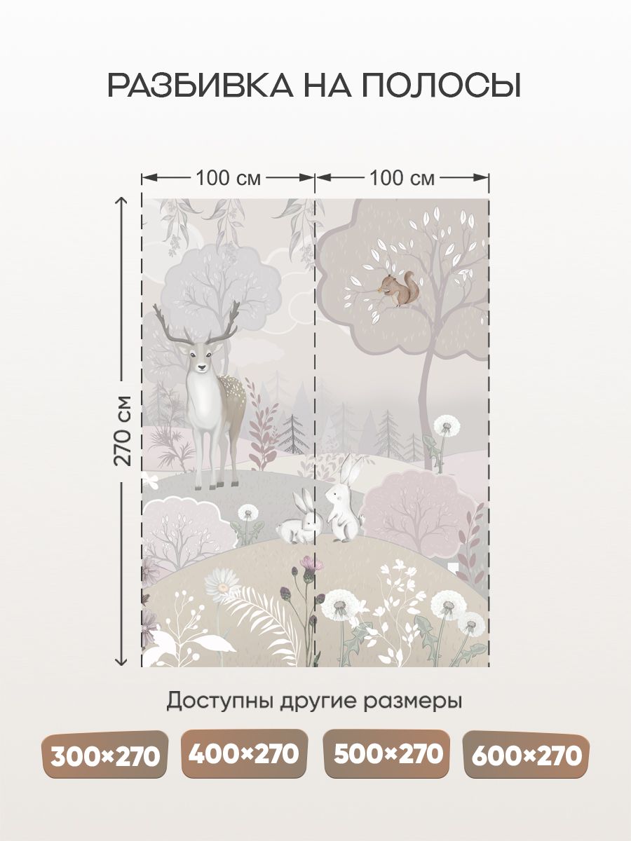 Бесшовные фотообои Животные лесные на полянке, артикул 13-622, прекрасно подойдут к любому помещению: в гостиную, в спальню, в кухню или в детскую и украсят ваш интерьер. Купить фотообои в интернет магазине MasterFresok можно в нескольких типовых размерах: