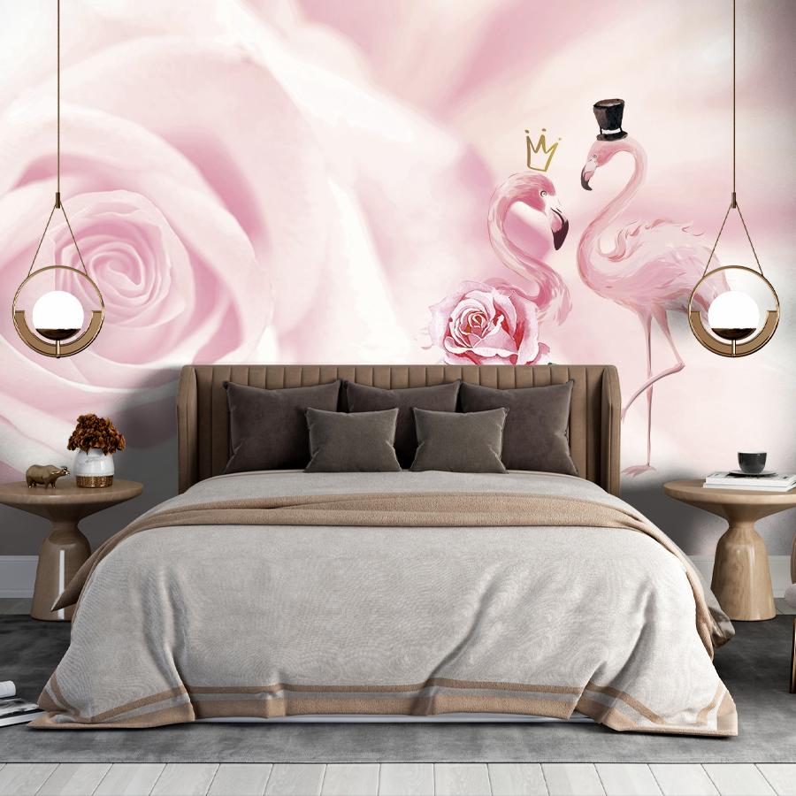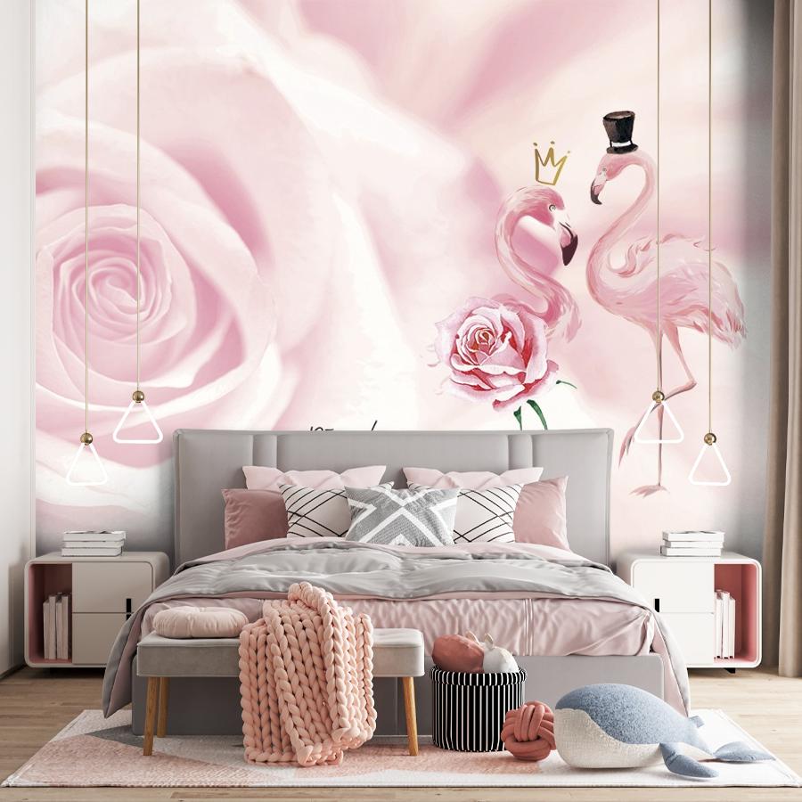 Бесшовные фотообои Танцующие фламинго, артикул 14-390, прекрасно подойдут к любому помещению: в гостиную, в спальню, в кухню или в детскую и украсят ваш интерьер. Купить фотообои в интернет магазине MasterFresok можно в нескольких типовых размерах: