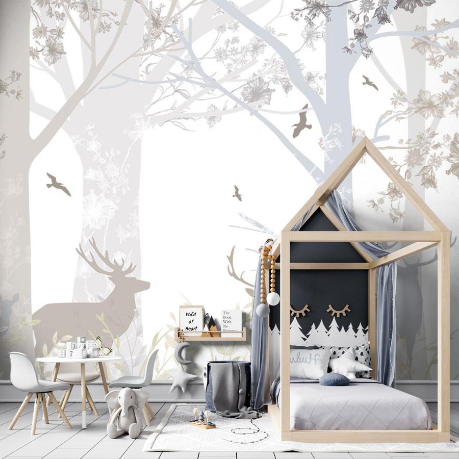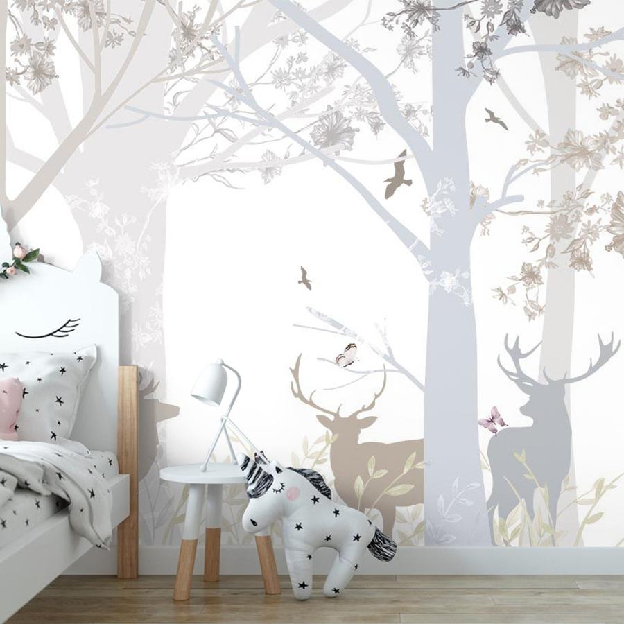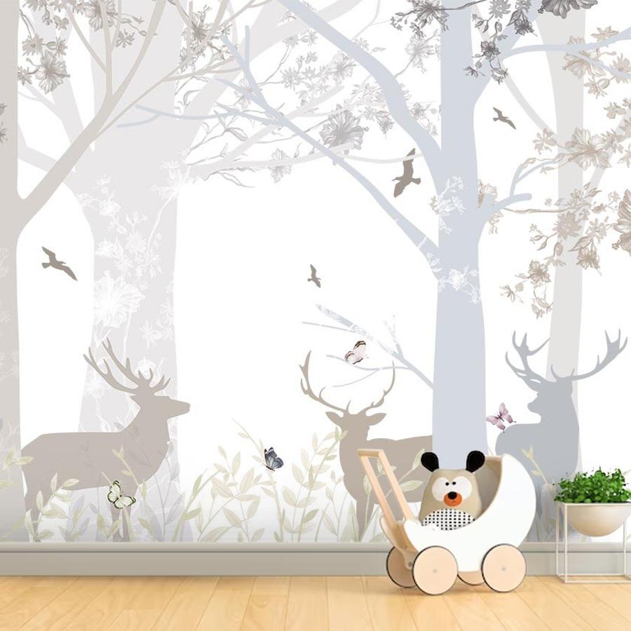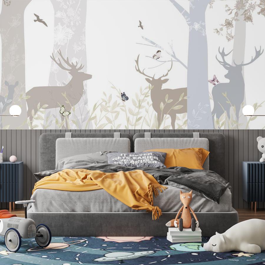 Бесшовные фотообои Олени в лесу , артикул 14-475, прекрасно подойдут к любому помещению: в гостиную, в спальню, в кухню или в детскую и украсят ваш интерьер. Купить фотообои в интернет магазине MasterFresok можно в нескольких типовых размерах:
