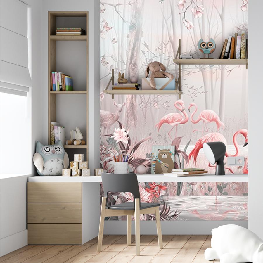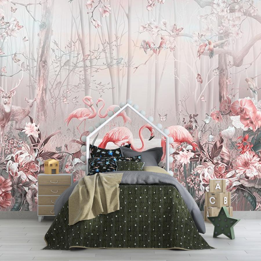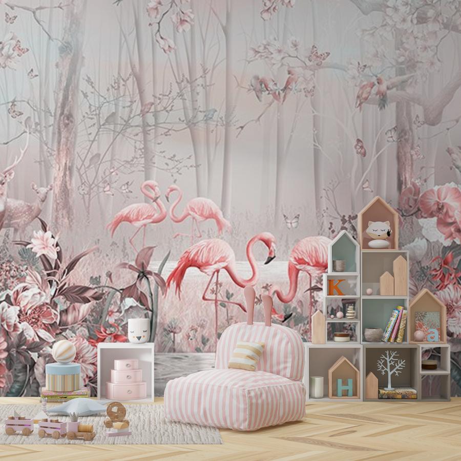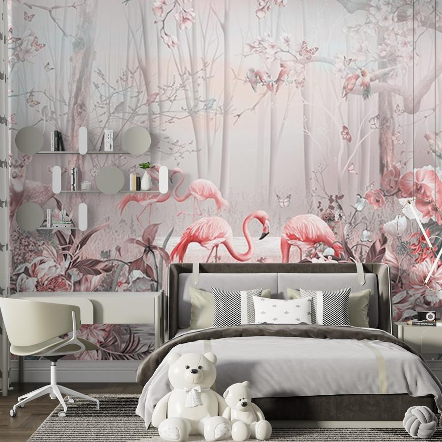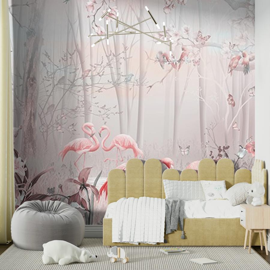 Фотообои Фламинго в цветущем саду 14-487-S-Холст