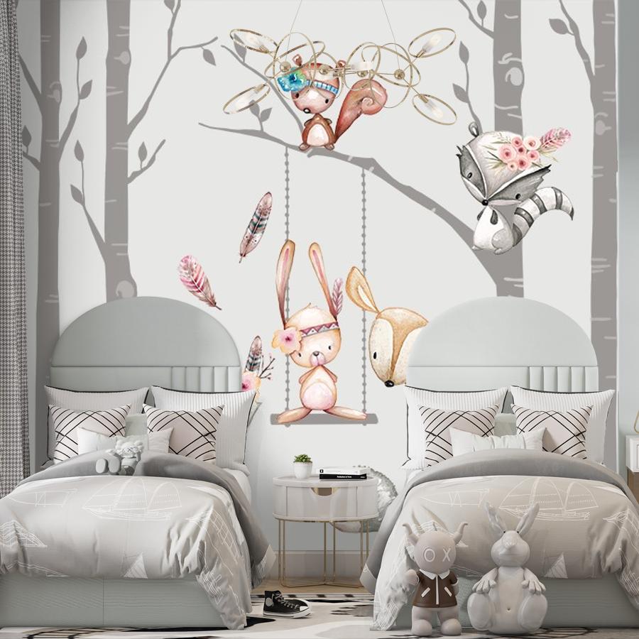 Бесшовные фотообои Милые животные на качелях , артикул 14-517, прекрасно подойдут к любому помещению: в гостиную, в спальню, в кухню или в детскую и украсят ваш интерьер. Купить фотообои в интернет магазине MasterFresok можно в нескольких типовых размерах: