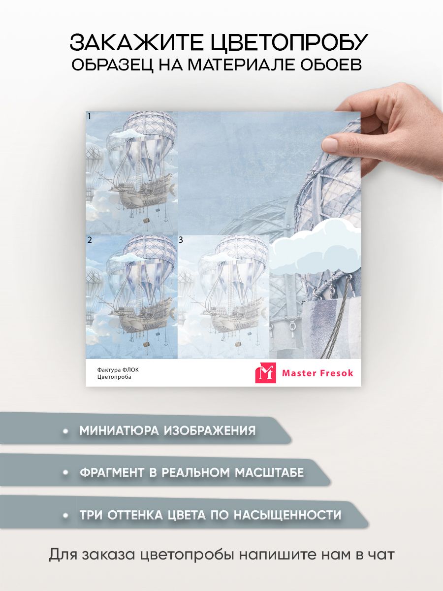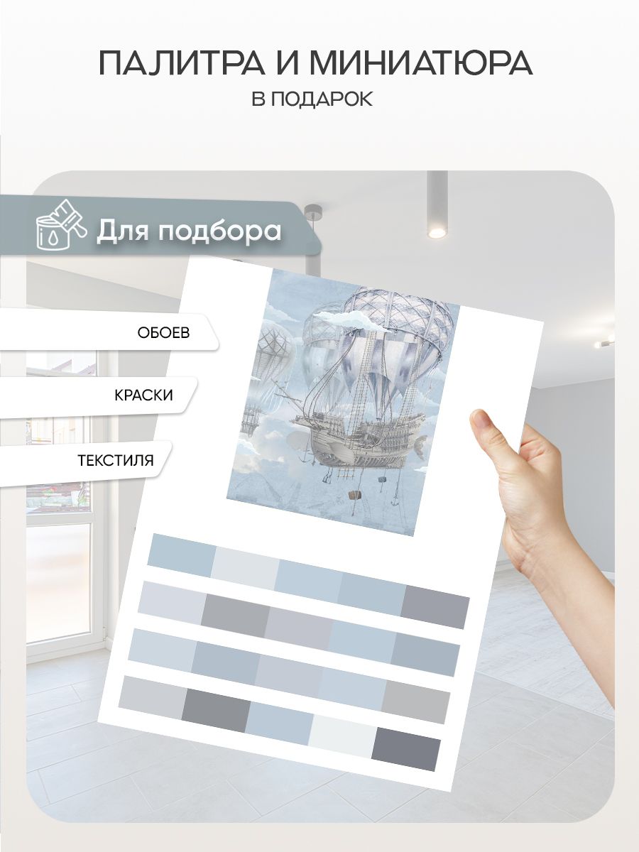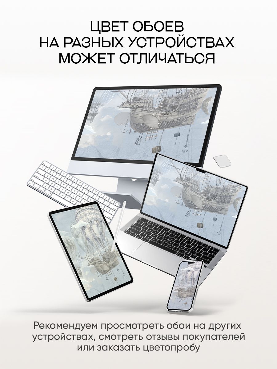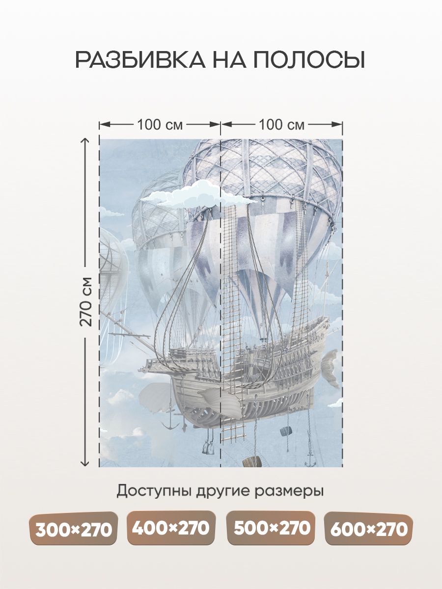 Бесшовные фотообои Летучий корабль, артикул 13-151, прекрасно подойдут к любому помещению: в гостиную, в спальню, в кухню или в детскую и украсят ваш интерьер. Купить фотообои в интернет магазине MasterFresok можно в нескольких типовых размерах: